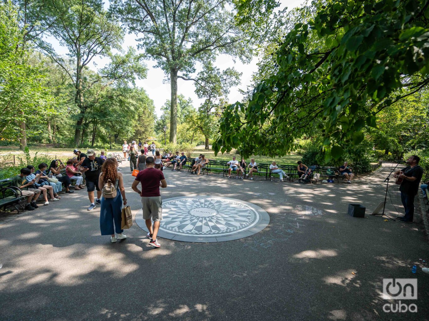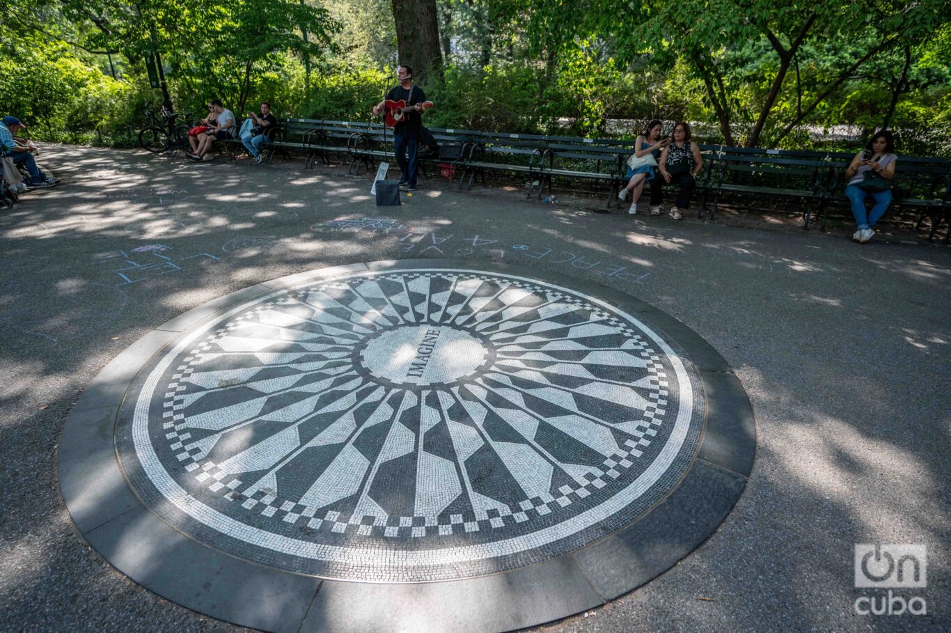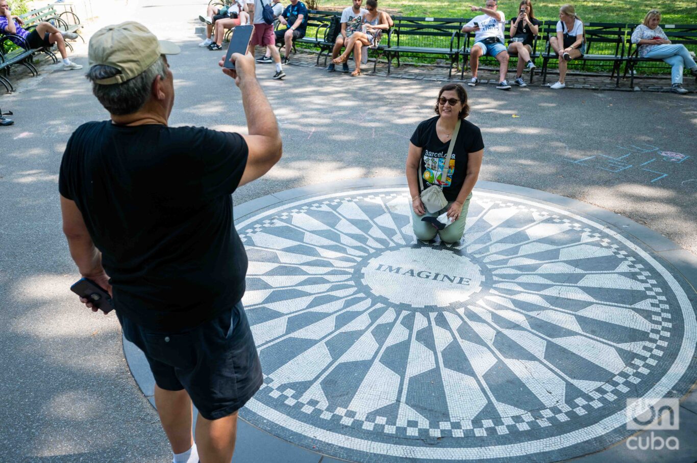 Cruzando la Calle 72, dentro del parque, está Strawberry Fields, el jardín que desde 1981 lleva el nombre de aquella canción onírica que Lennon escribió evocando su infancia. Es uno de los sitios más visitados de Nueva York. Muchos turistas van directo allí sin siquiera pasar por el Dakota. En el centro está el mosaico con la palabra “Imagine”. Algunos se sacan selfies; otros —los que conocen el peso del silencio— posan la mano sobre las baldosas como quien toca un altar sin dioses. Fue en ese lugar donde Yoko Ono esparció las cenizas de John.