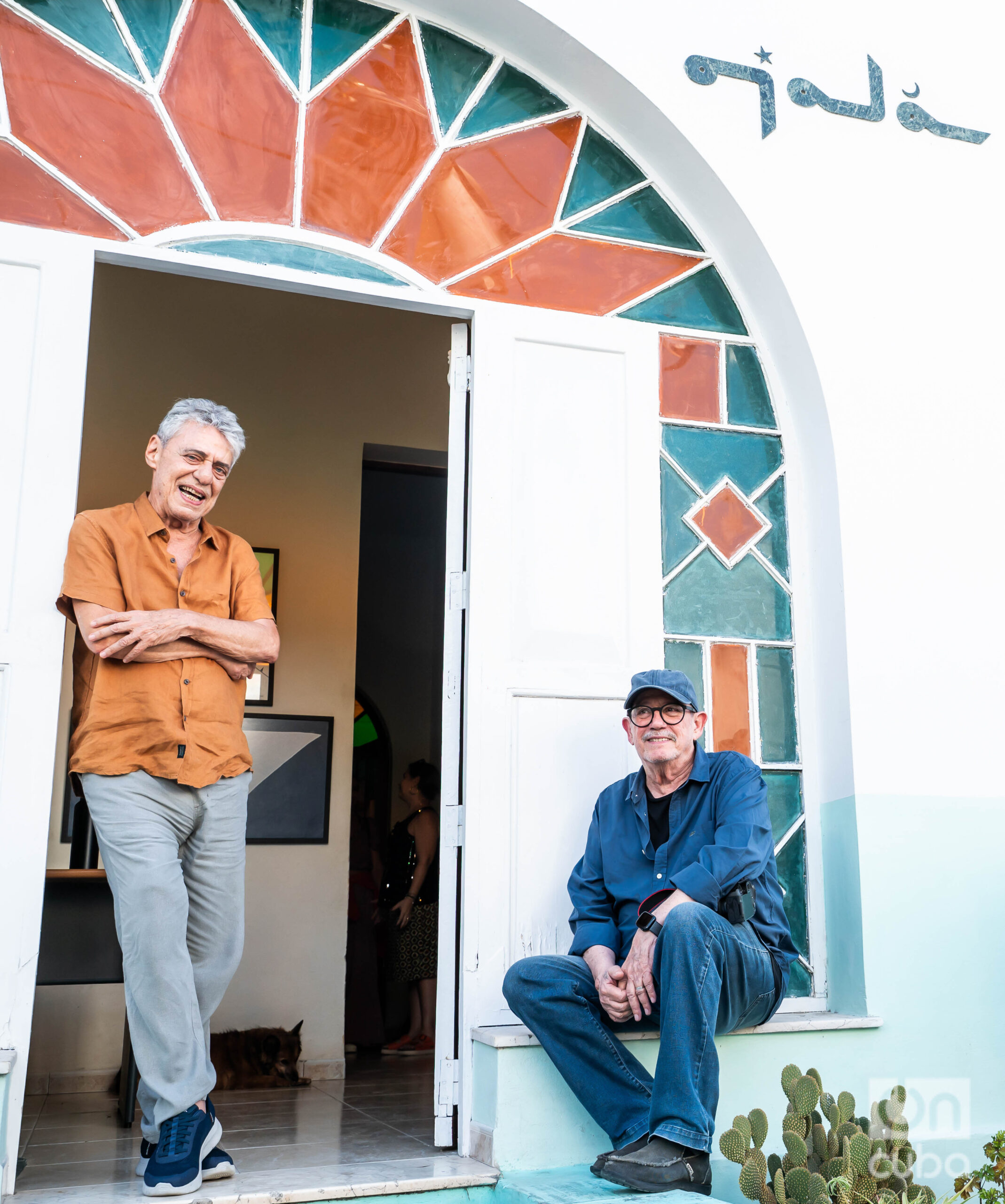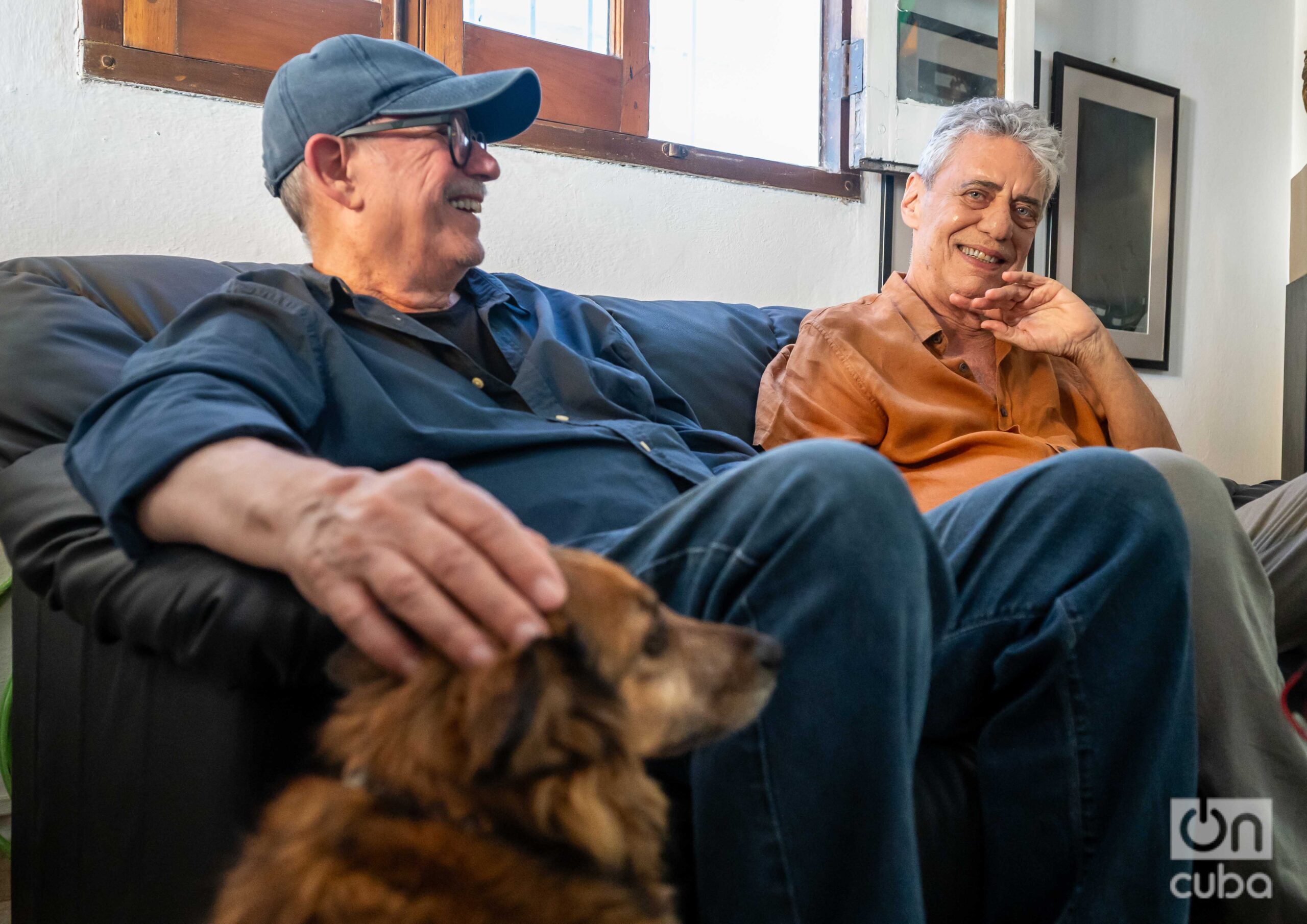 Entre risas y recuerdos, Chico y Silvio reviven anécdotas que el tiempo no logró borrar. A su lado, Dorita, la perrita rescatada y mascota de Ojalá. Foto: Kaloian.