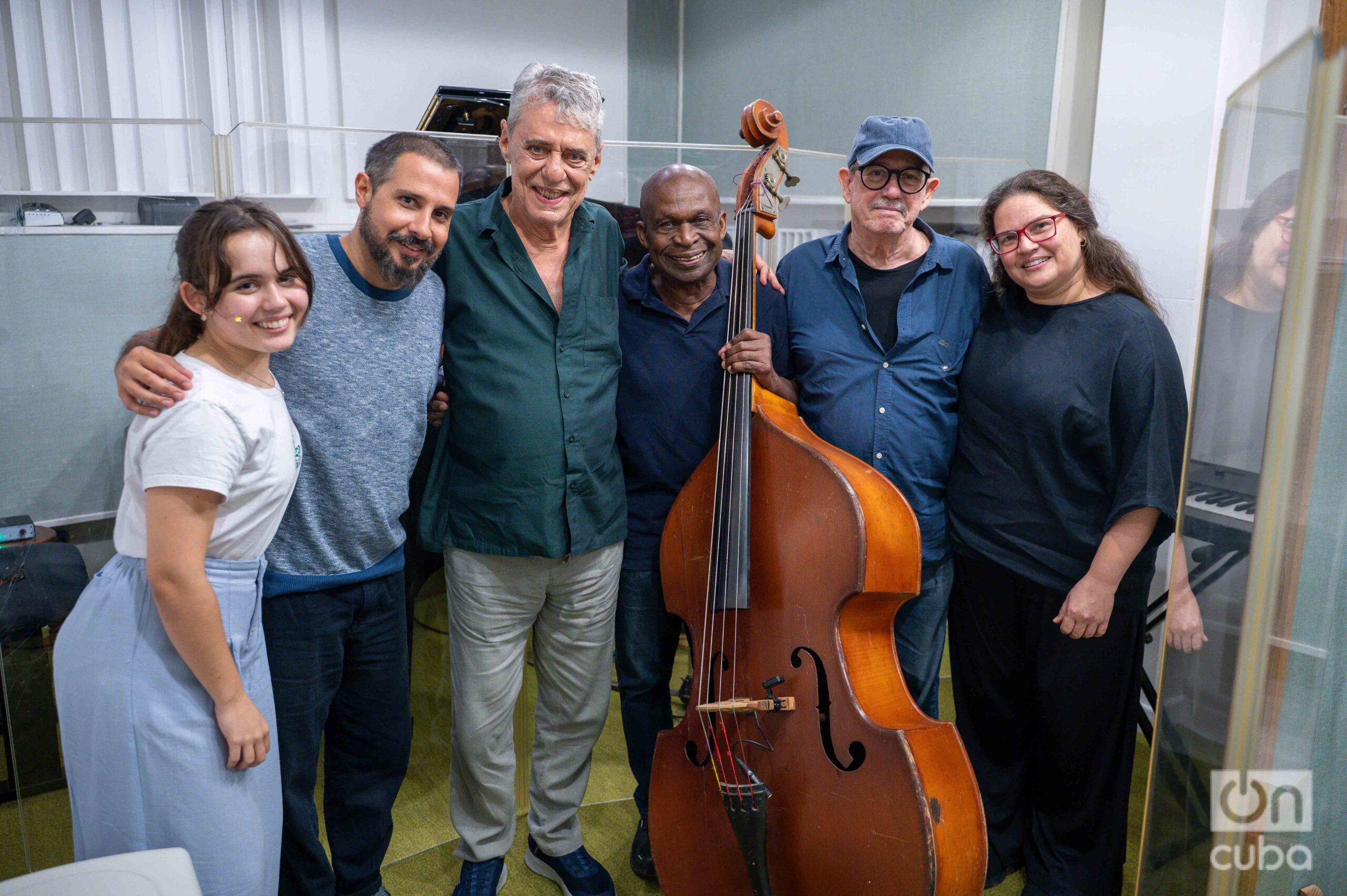 Amin Blanco, de Ojalá, Carol Proner, Niurka González, Chico Buarque, Francisco Proner y Silvio Rodríguez. Foto: Kaloian.
