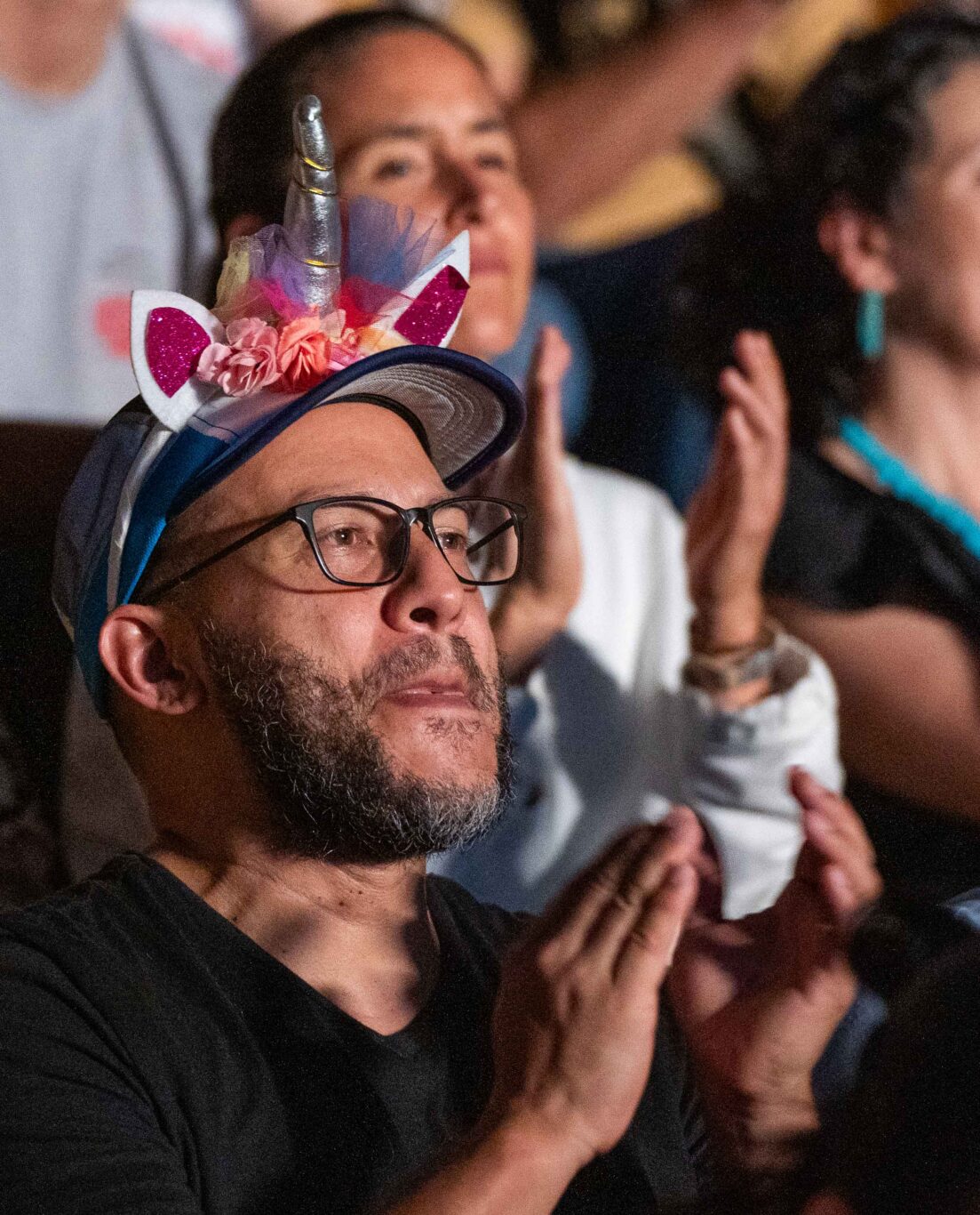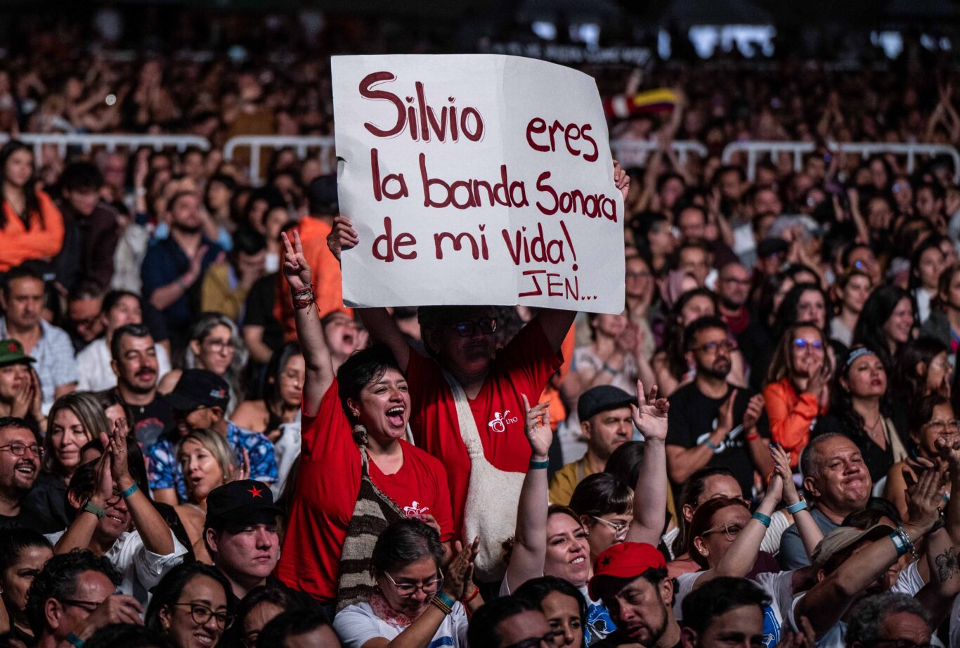 Para Carlos Alberto Maldonado Espinaza, chileno de casi 53, el primer fogonazo llegó a los 12, con “Debo partirme en dos”: “Fue como un mazazo en la cabeza, y desde ahí el viaje no ha parado”. Siguió la gira desde La Habana, los cuatro conciertos en Santiago, Lima, y ya tiene entradas para Medellín y Cali. Le sorprenden los matices del público: “Unos más cantadores, otros más gritones. En todos lados había gente de todas las edades, y me encanta ver tanta juventud”. Hay un momento que lo atraviesa siempre: la lectura del poema “Halt”, de Luis Rogelio Nogueras. “Lo que sentí diferente fue lo que me ha ido pasando a mí con el poema”. Lo que une a los públicos, cree, es que “ven a Silvio como un bálsamo para estos tiempos atroces”.
