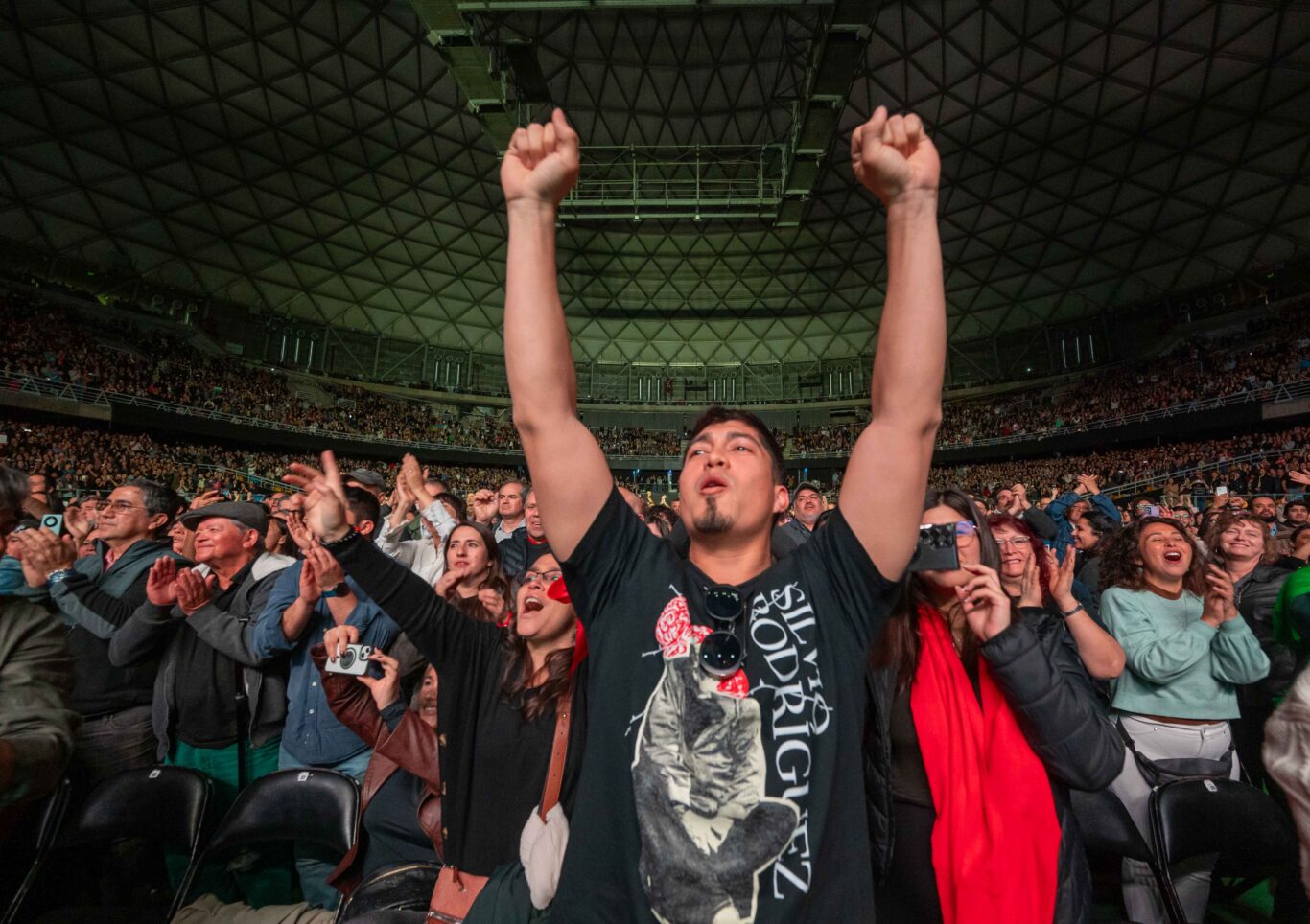 Esa memoria —de personas, ciudades y luchas— también la nombra Aida Roa Villar, chilena, que cumplió 50 años en uno de estos conciertos. “Crecí con sus canciones; las conocí por mi madre. Han estado en mis momentos más difíciles y en los más felices”, cuenta. En esta gira estuvo en Santiago de Chile, Buenos Aires y Lima. Cada plaza le dejó una emoción distinta: “En Chile, siete años de espera. Emoción total. En Buenos Aires me preocupó su salud; admiro que haga tantos conciertos y lo entregue todo con amor. En Lima, que cumplí cincuenta, lloré a mares”.