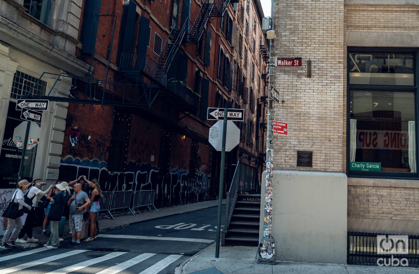 El epicentro de ese comercio está en Canal Street, en pleno Chinatown, en el bajo Manhattan. Aunque terminé allí, confieso que mi objetivo no era comprar carteras. Buscaba otra esquina: la de Walker Street y Cortlandt Alley, hoy llamada “Charly García Corner”, donde el astro del rock argentino se retrató hace cuatro décadas para la tapa de Clics modernos, un disco que con el tiempo se convertiría en clásico.