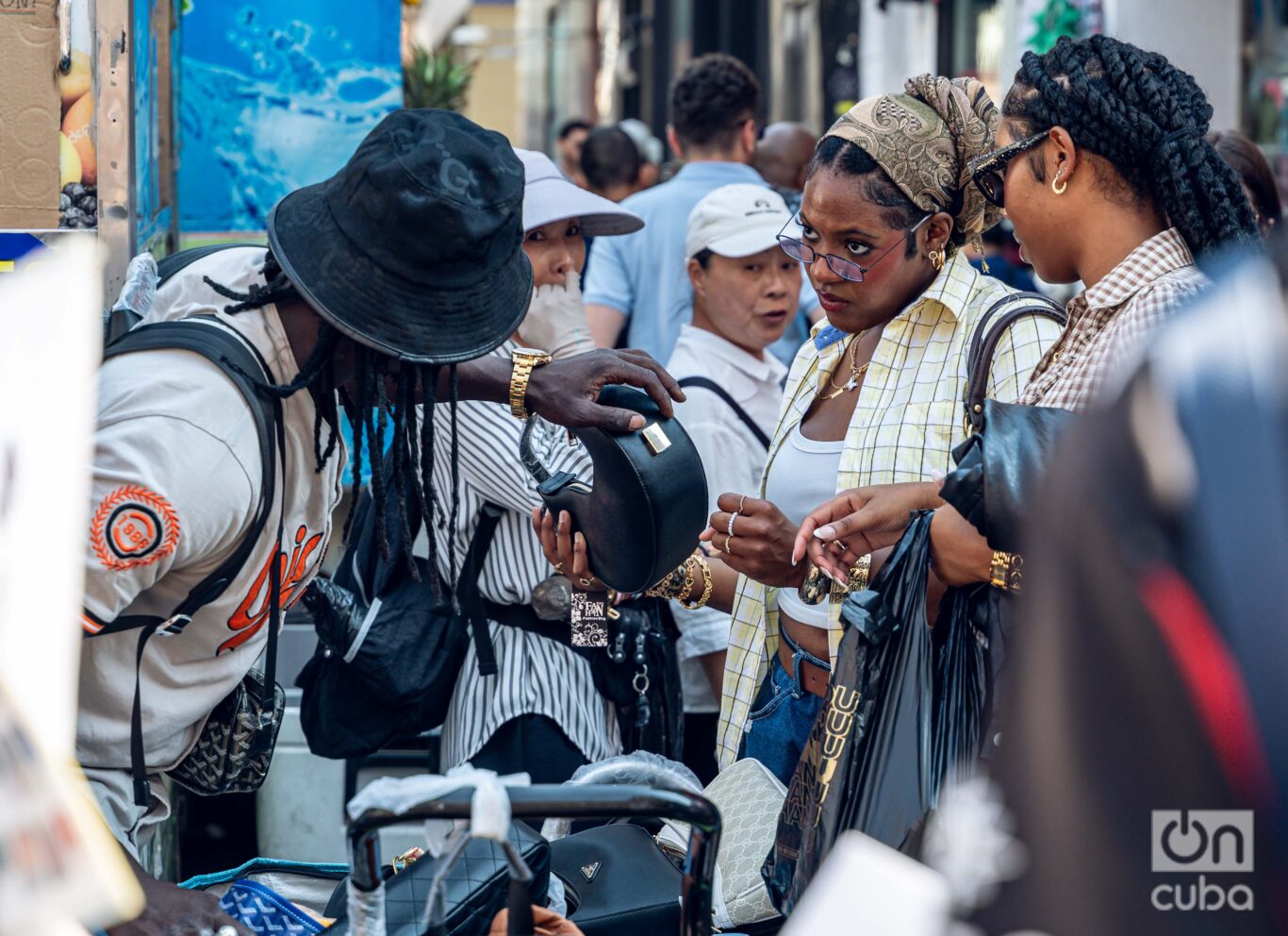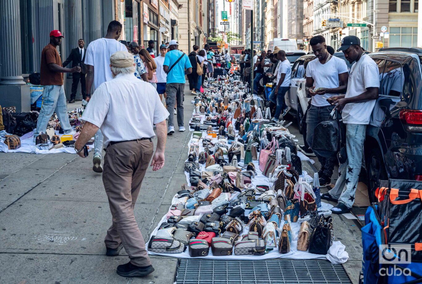 Los vendedores visibles, en su mayoría inmigrantes senegaleses, ofrecían imitaciones de baja calidad: bolsos con logotipos alterados y marcas conocidas levemente tergiversadas. Ese detalle, en cierto modo, les servía de resguardo legal, ya que en Estados Unidos la venta de copias exactas está prohibida. Sin embargo, la verdadera operación ocurría entre los transeúntes. Sigilosas mujeres de origen chino se movían sin puesto fijo ni mostrador: caminaban en grupos de dos o tres, se acercaban discretamente a los posibles clientes y susurraban los nombres de las marcas prohibidas como si fueran contraseñas secretas: “Chanel, Gucci, Prada, Louis Vuitton…”.