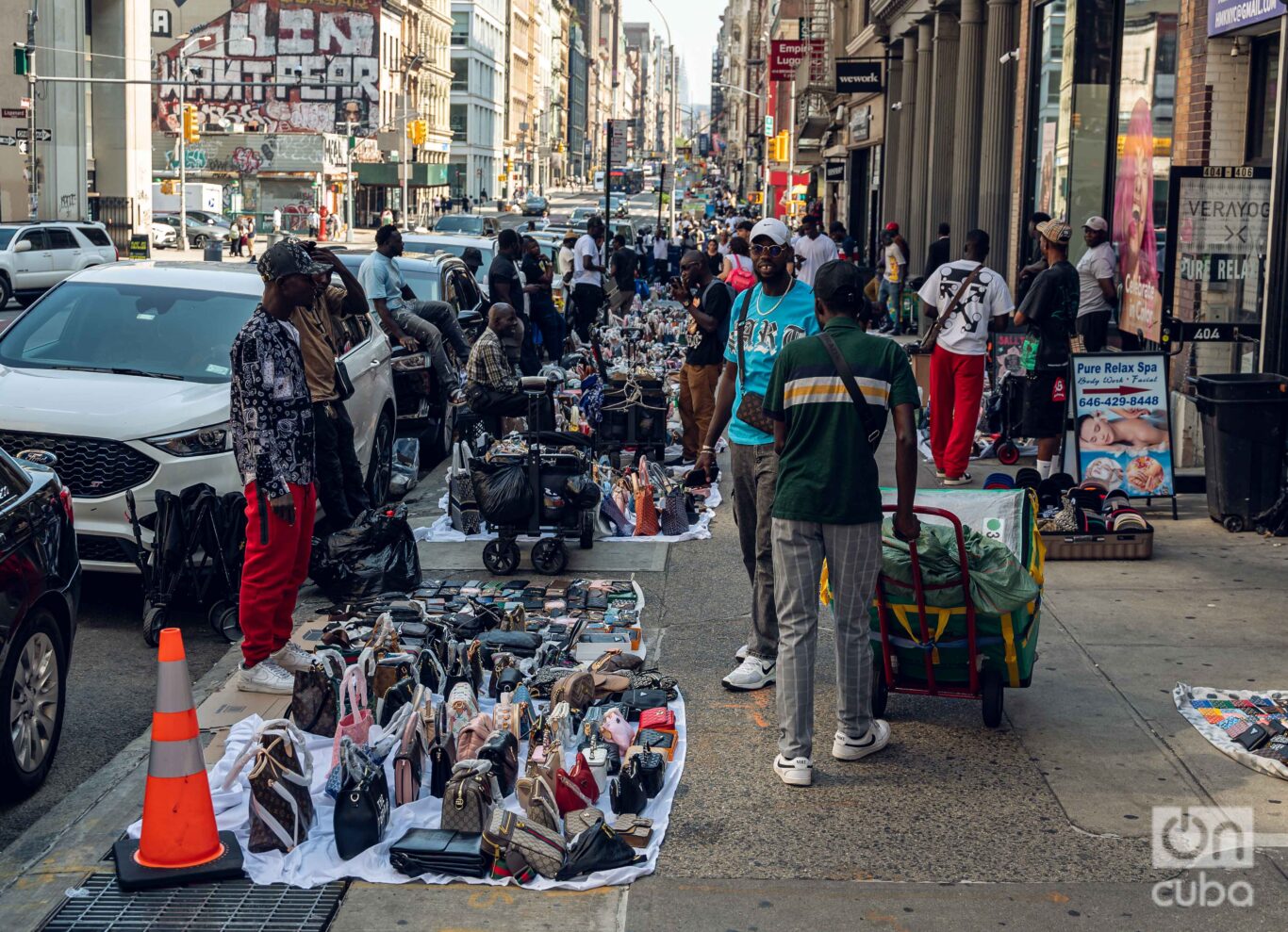 El contraste es brutal: a solo unas cuadras, las grandes marcas levantan templos de mármol y cristal; en Canal Street, bajo la sombra de rascacielos, los vendedores improvisan su economía de supervivencia.