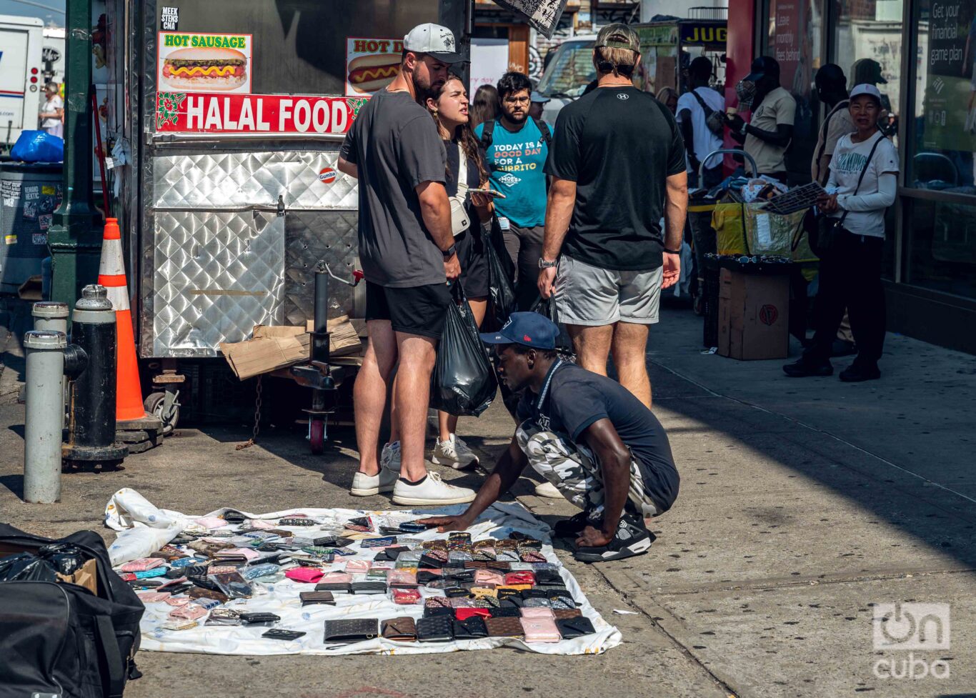 El contraste es brutal: a solo unas cuadras, las grandes marcas levantan templos de mármol y cristal; en Canal Street, bajo la sombra de rascacielos, los vendedores improvisan su economía de supervivencia.