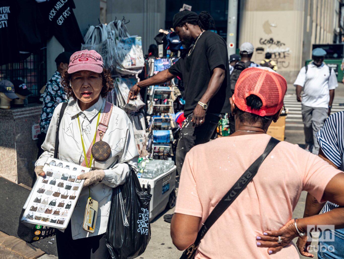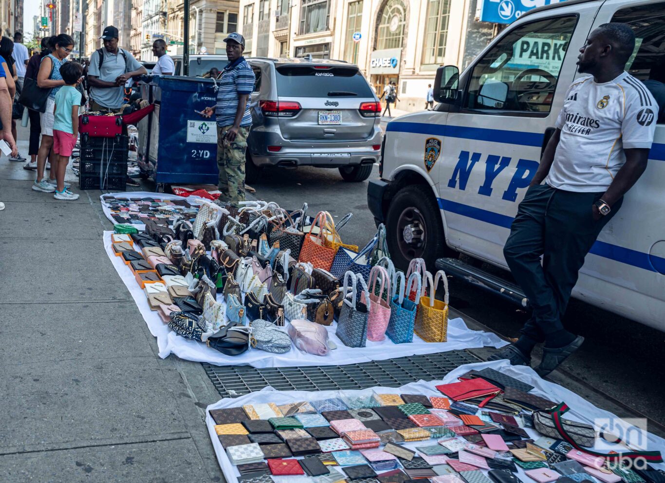 Los vendedores visibles, en su mayoría inmigrantes senegaleses, ofrecían imitaciones de baja calidad: bolsos con logotipos alterados y marcas conocidas levemente tergiversadas. Ese detalle, en cierto modo, les servía de resguardo legal, ya que en Estados Unidos la venta de copias exactas está prohibida. Sin embargo, la verdadera operación ocurría entre los transeúntes. Sigilosas mujeres de origen chino se movían sin puesto fijo ni mostrador: caminaban en grupos de dos o tres, se acercaban discretamente a los posibles clientes y susurraban los nombres de las marcas prohibidas como si fueran contraseñas secretas: “Chanel, Gucci, Prada, Louis Vuitton…”.