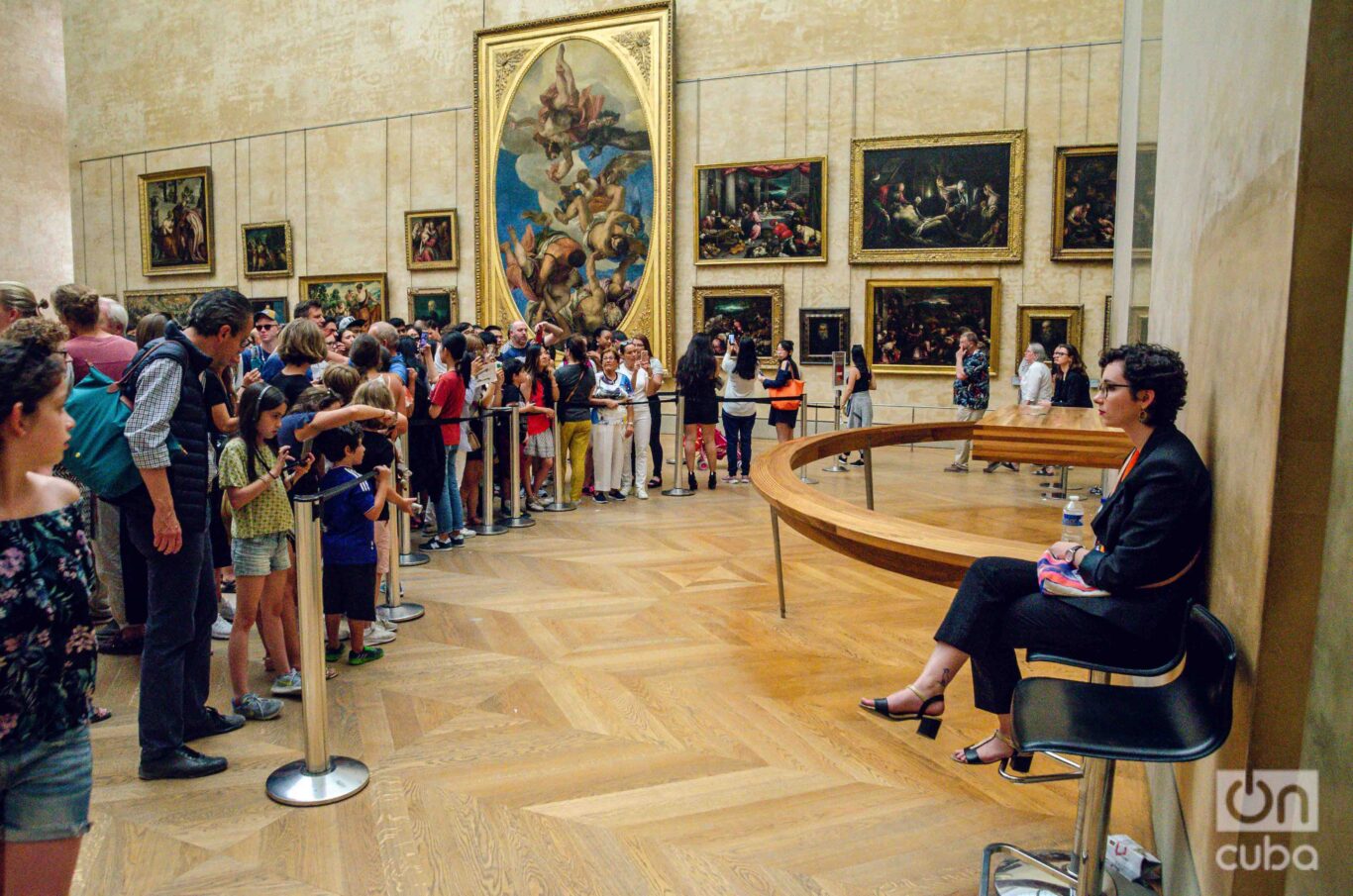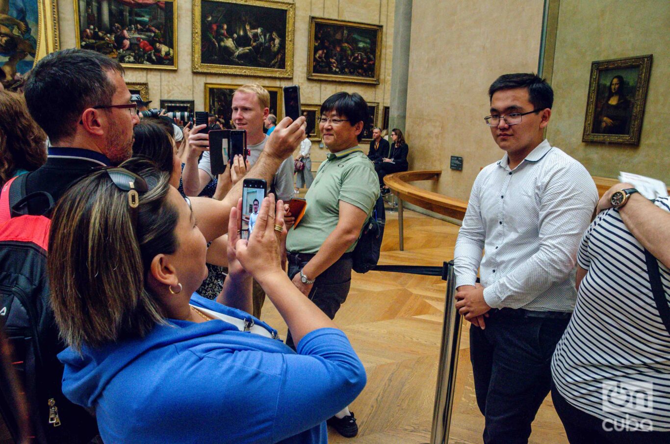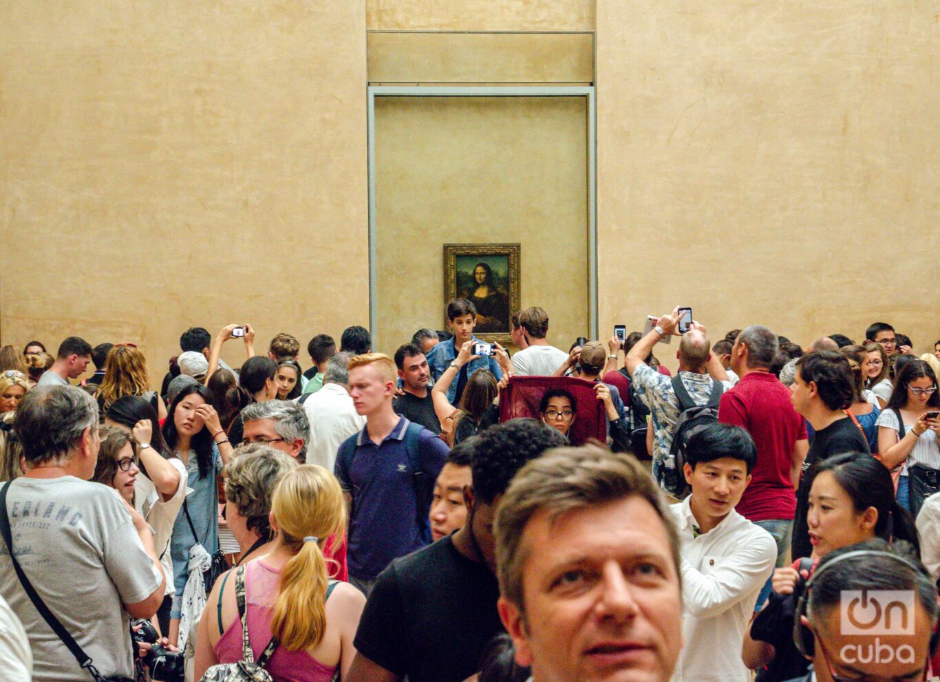 Y frente a la Mona Lisa… bueno, creo que, desde la distancia, la vi asustada. Rodeada de una multitud de turistas que la miraban menos que a sus propios reflejos en la pantalla, la dama del Louvre parecía implorar algo así como: “mírenme a mí, no a sus celulares”.