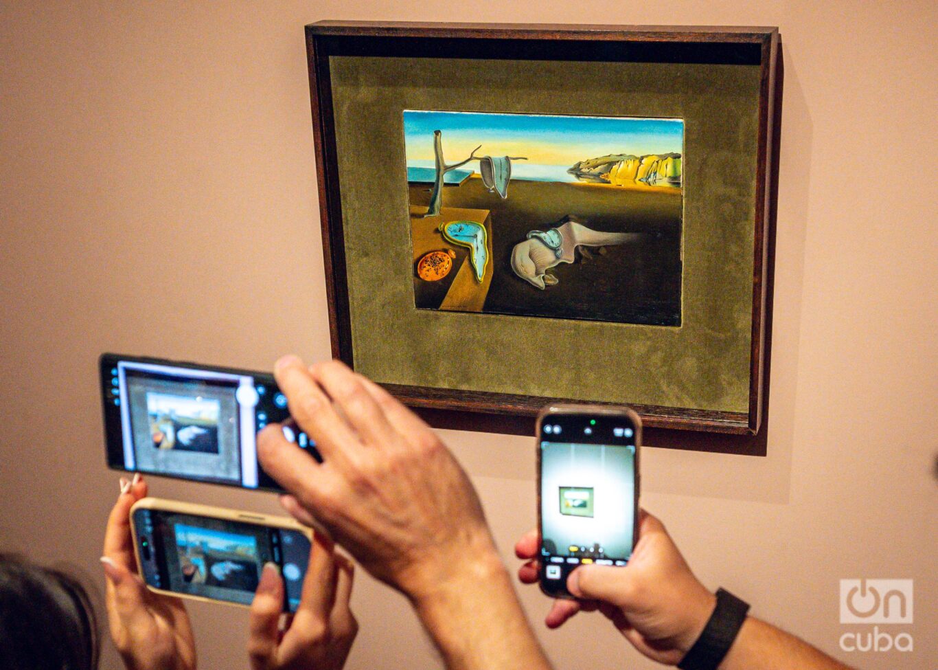 En medio del torbellino, la pintura parecía resistir. Allí estaban, imperturbables, sus relojes derritiéndose en un paisaje árido, recordándonos que el tiempo —ese que no alcanza ni para mirar un cuadro dos segundos— se nos escurre inevitablemente entre los dedos.