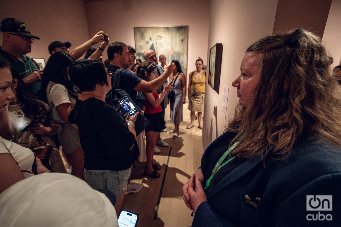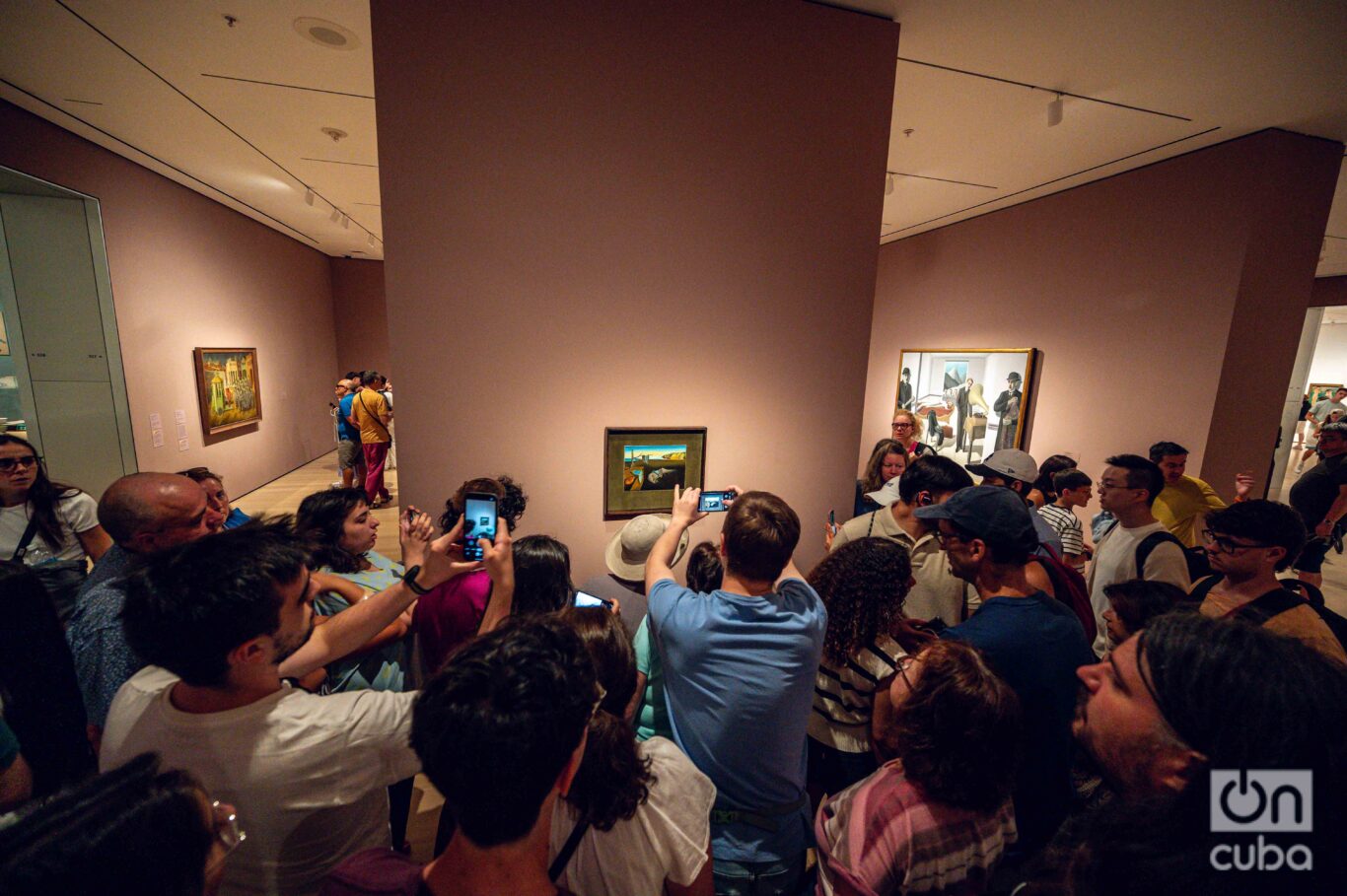 La escena tenía algo grotescamente surrealista: el tumulto de cuerpos y celulares convertía en pesadilla la contemplación de una obra nacida de un sueño. Nadie permanecía más de un segundo frente al cuadro.