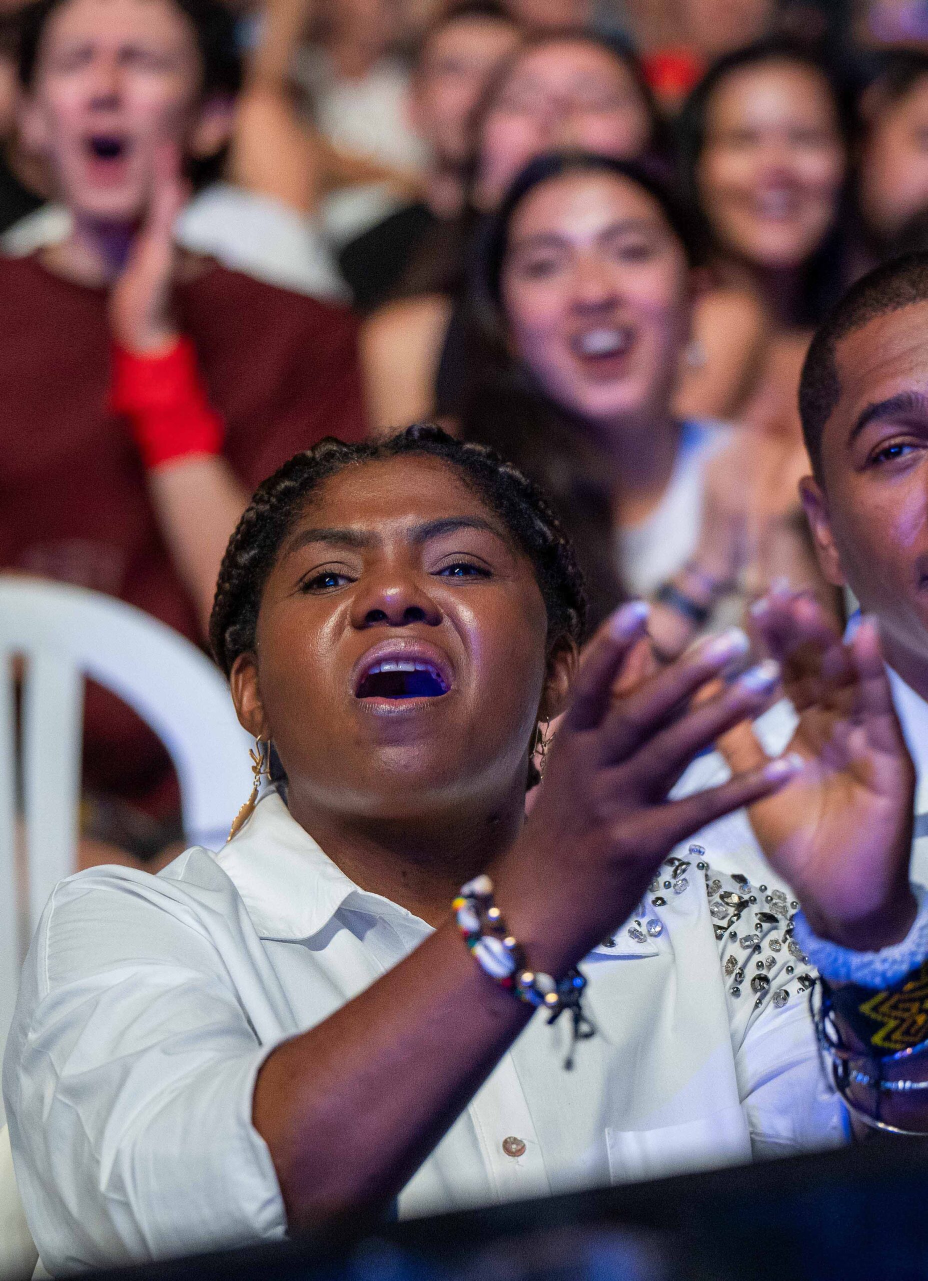 Durante las más de dos horas de concierto, el sentimiento estuvo a flor de piel. Desde el público se asomaban rostros jóvenes y adultos con la mirada vidriosa. Entre ellos estaba Francia Márquez, vicepresidenta de Colombia, quien al final del concierto se acercó a saludar al trovador y lo abrazó con gratitud.