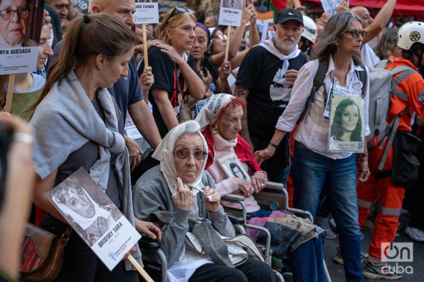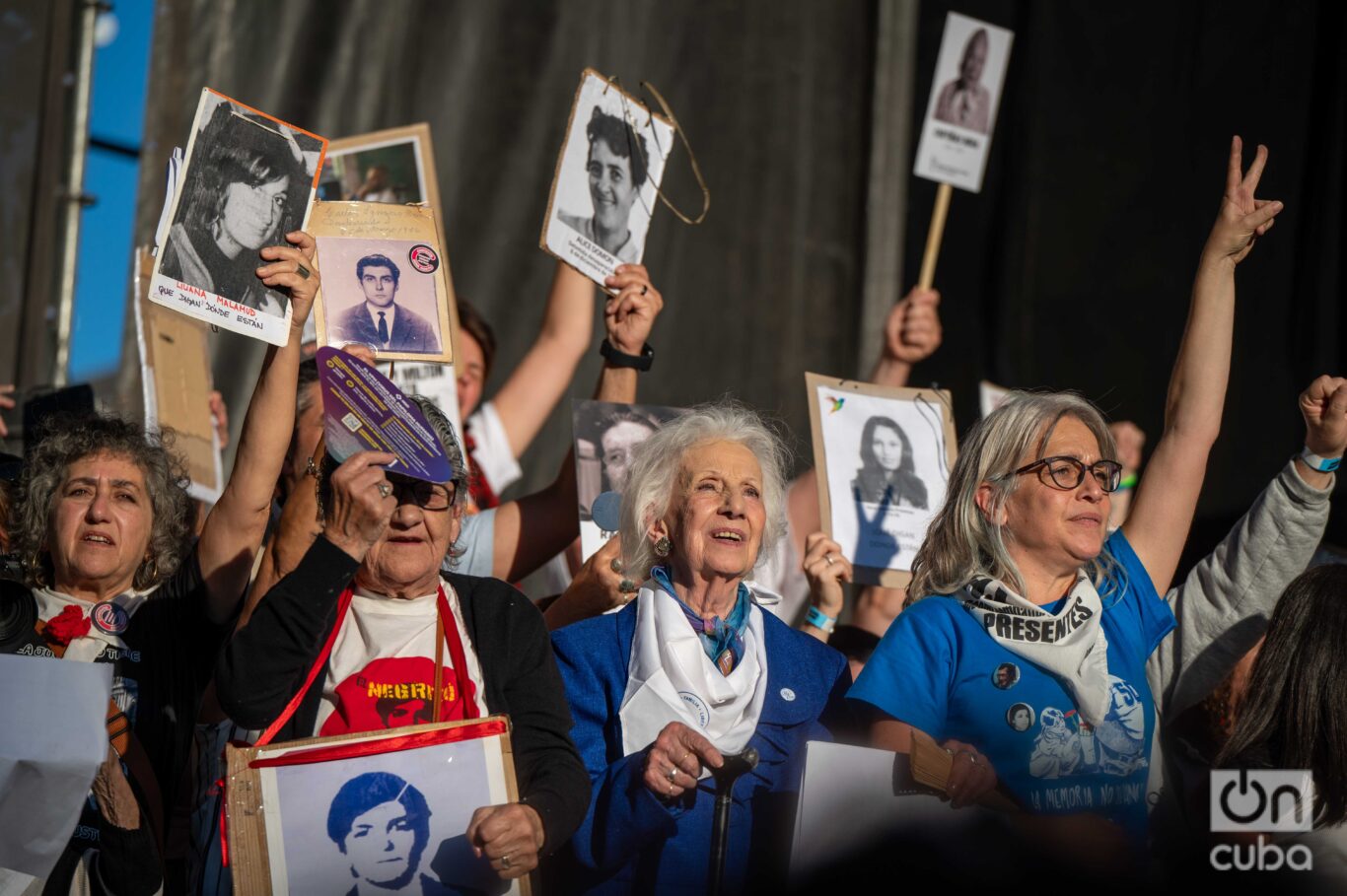“Es lindo envejecer luchando”, dijo alguna vez Estela de Carlotto. Y ahí estaba, a sus 94 años, con el bastón como una prolongación de la memoria, sobre el escenario, la presidenta de Abuelas de Plaza de Mayo observando a la multitud. A su lado, las pocas que aún siguen vivas: mujeres que cargan casi un siglo sobre los hombros y un dolor que no envejece. Hijos e hijas desaparecidos. Nietos robados.