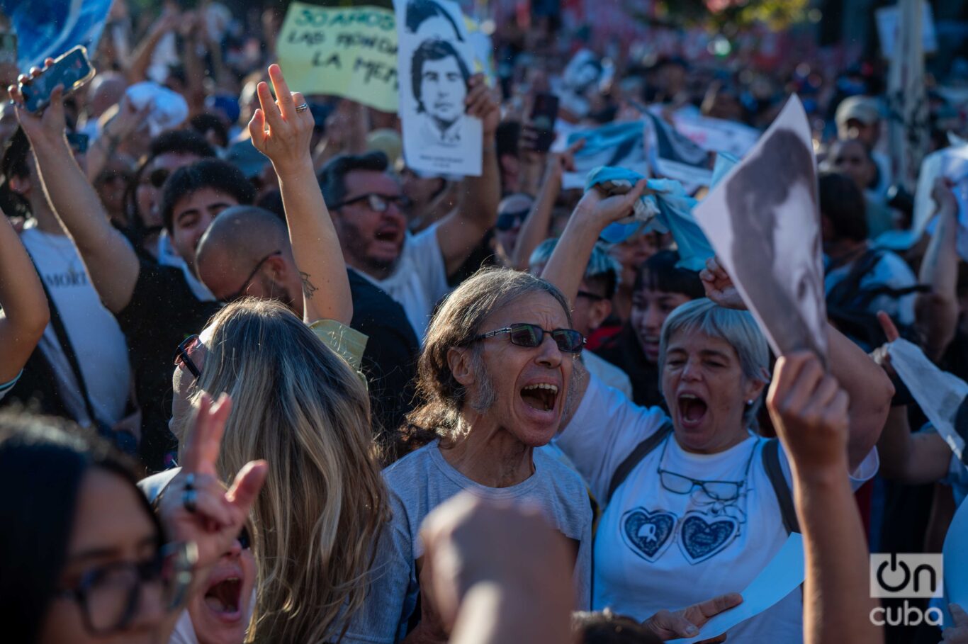 En un presente en el que desde sectores del poder se intenta relativizar ese pasado —hablar de “excesos”, reinstalar el “algo habrán hecho”, invocar una “historia completa”—, la plaza respondió sin fisuras. Una y otra vez se escuchó la frase que atraviesa generaciones y condensa una ética colectiva: “Nunca más”. Nacida del horror documentado por la Comisión Nacional sobre la Desaparición de Personas (CONADEP) y consagrada como límite en el Juicio a las Juntas, esa frase es la síntesis de un pacto social que se reactualiza frente a quienes intentan diluir responsabilidades o reescribir el pasado, vuelve a decir lo mismo, con la misma claridad: no hay equidistancia posible ante el terrorismo de Estado. Hay memoria, hay verdad y hay justicia.
