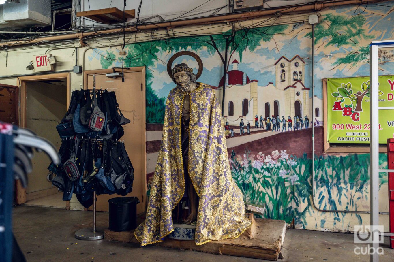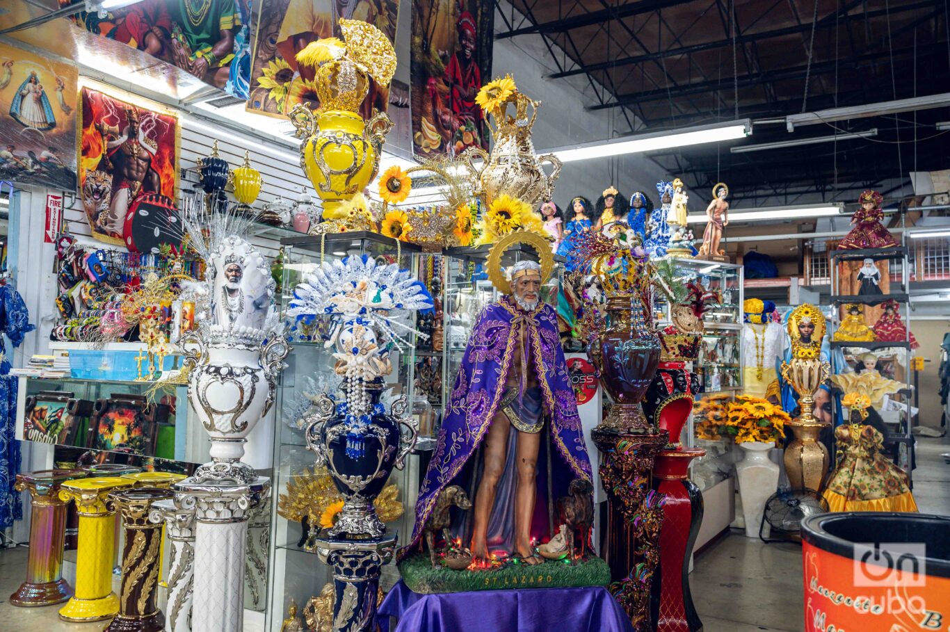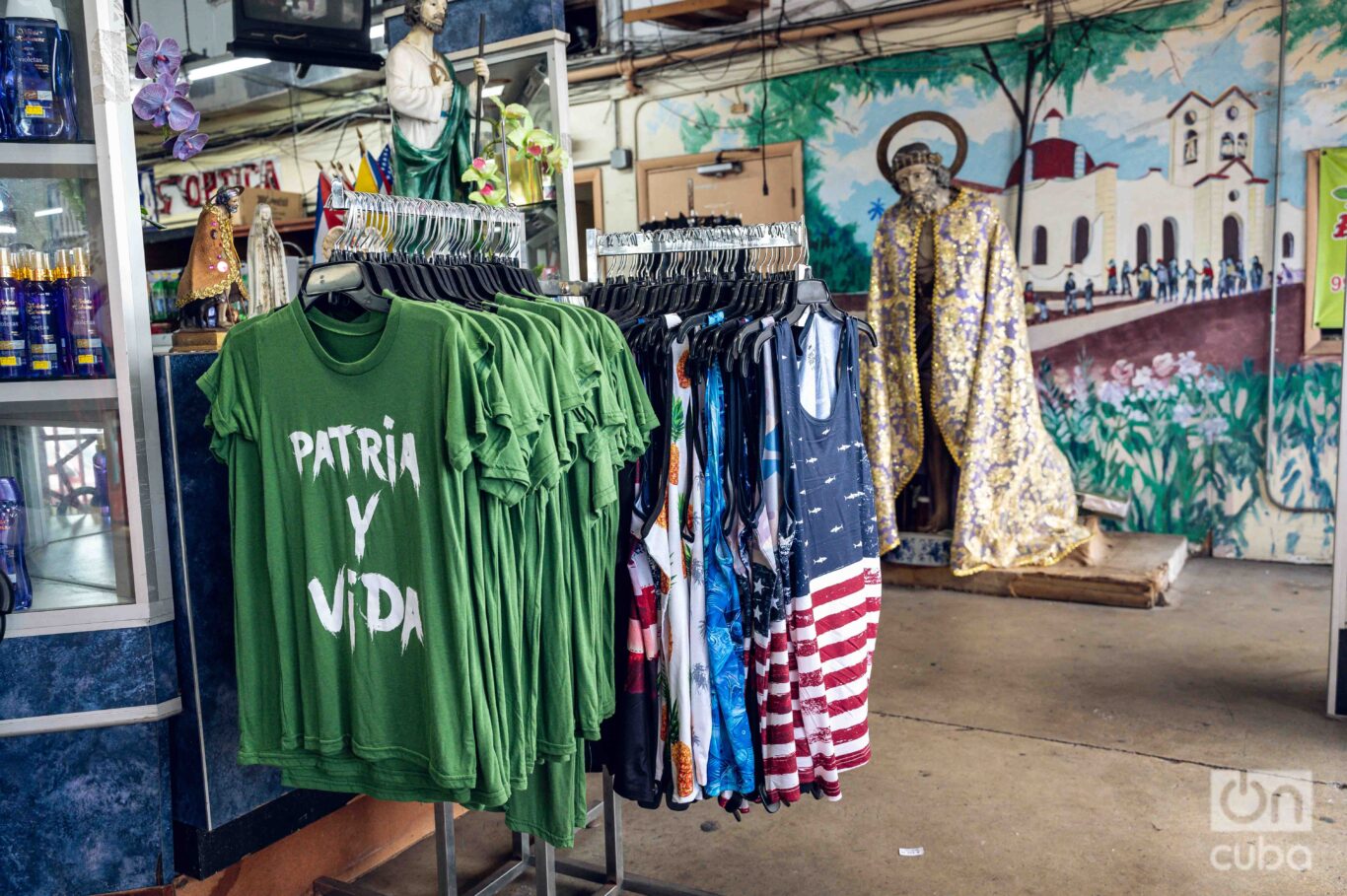 En la entrada, una imagen de San Lázaro con su manto recibe a los visitantes. No es casual: es uno de los santos más venerados en Cuba, después de la Virgen de la Caridad del Cobre. Y si en las tiendas de la isla todavía abundan los murales con efemérides, consignas y mensajes del sindicato, acá no faltan las equivalencias: en vez de “Patria o muerte”, un flamante cartel anuncia “Patria y vida”. Esa mezcla de fe, política, comercio y picardía cubana resume a la perfección lo que pasa adentro.