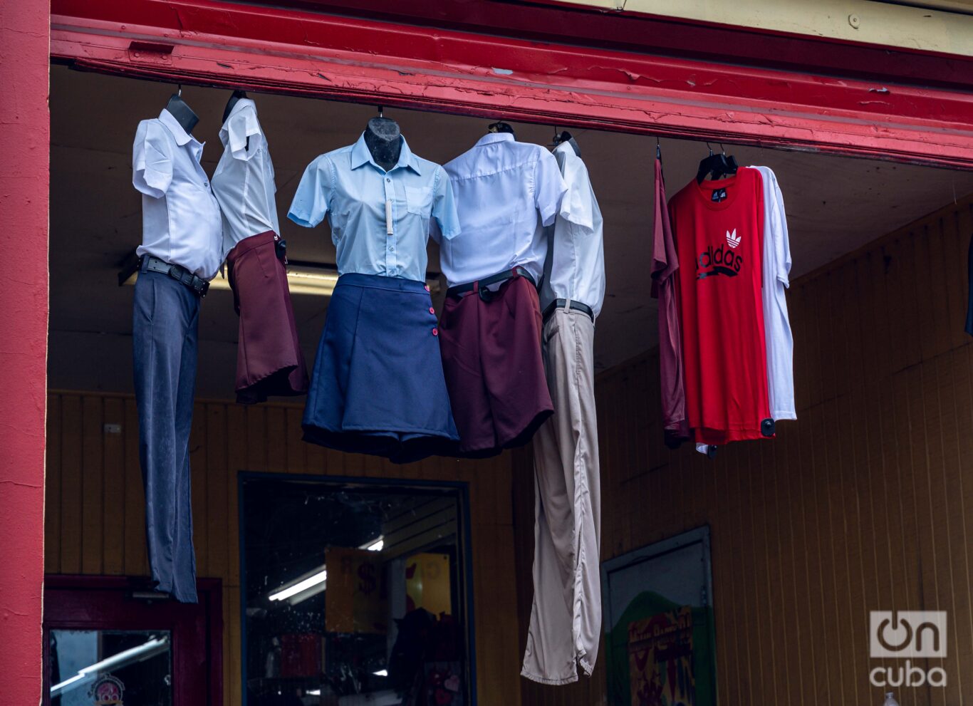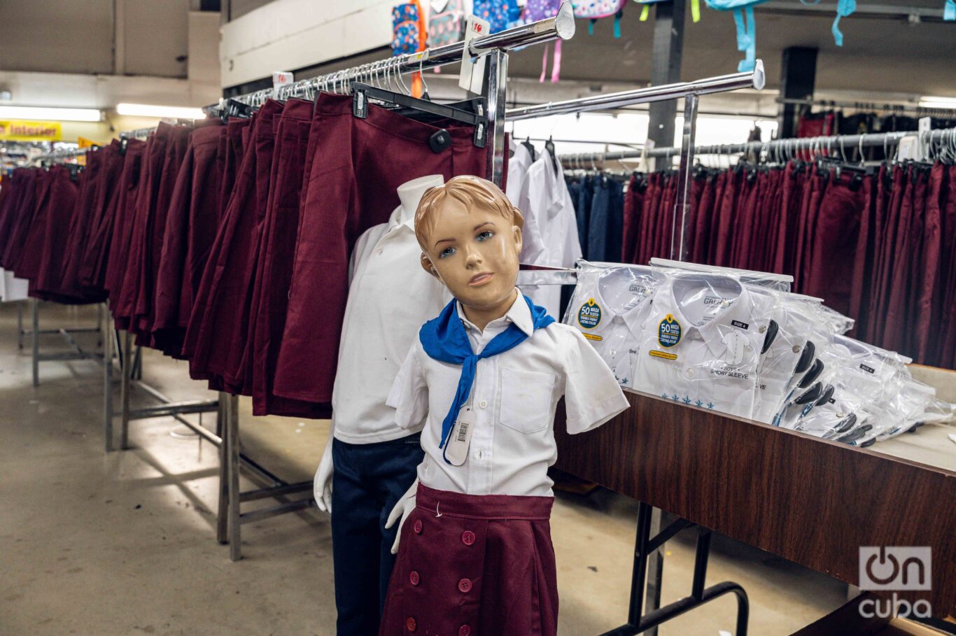 En un sector encuentras mosquiteros y batas de casa idénticas a las de las abuelas; en otro, las legendarias canastillas para bebés que parecen diseñadas para que nada cambie en cincuenta años. Pero lo que más llama la atención es la sección de uniformes escolares: desde preescolar hasta el preuniversitario, con pañoletas azules y rojas incluidas. Y lo mejor: todas las tallas y, lo que es un sueño húmedo en Cuba: ¡por la libre!