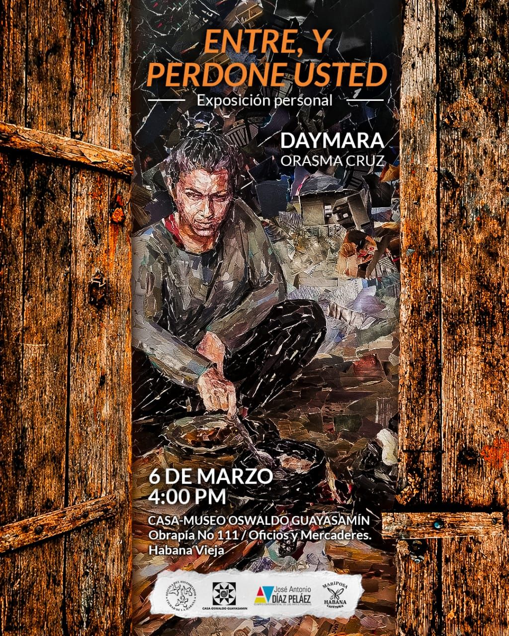 La artista cubana Daymara Orasma Cruz inaugurará su exposición personal Entre, y perdone usted este viernes 6 de marzo, a las 4:00 p.m., en la Casa Museo Oswaldo Guayasamín.
