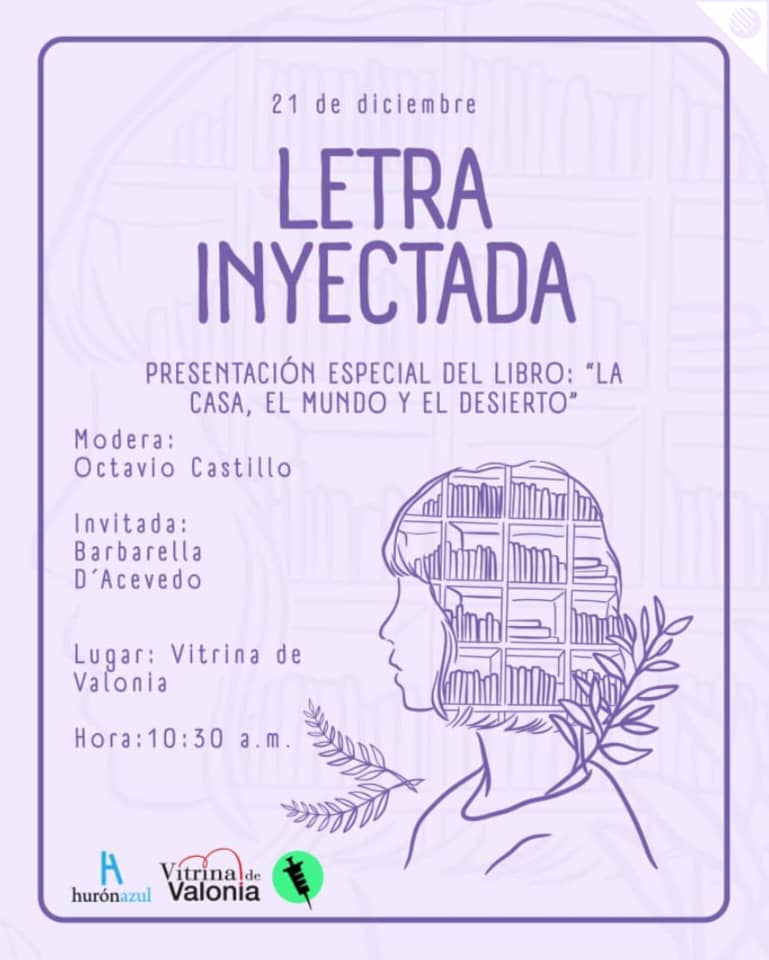 El espacio Letra Inyectada propone una presentación especial del libro La casa, el mundo y el desierto este domingo 21 de diciembre, a las 10:00 a.m., en Vitrina de Valonia.