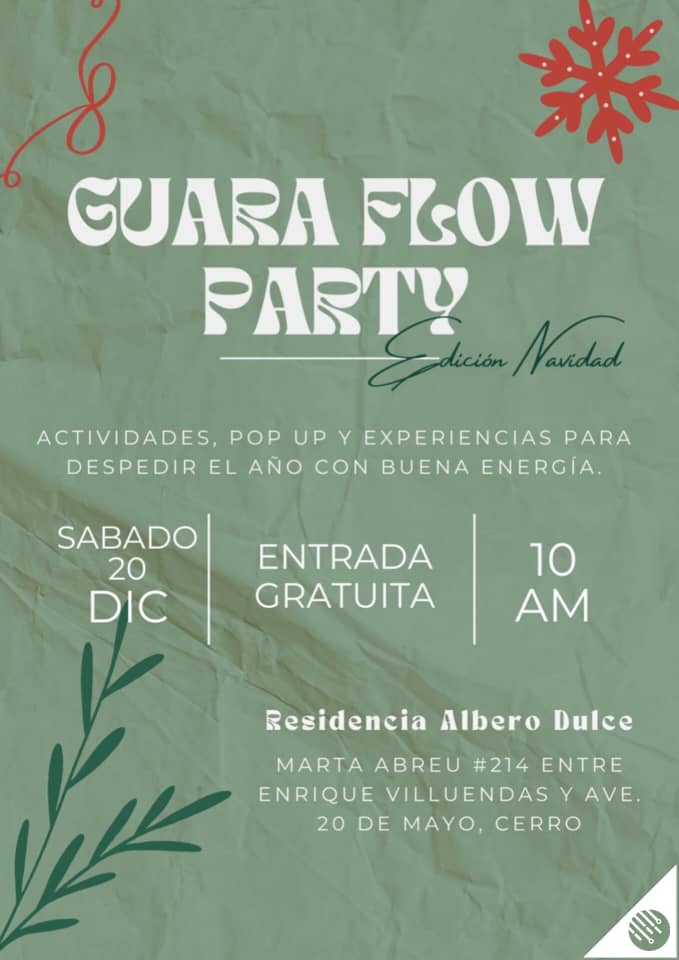 Guara Flow Party celebra su edición navideña este sábado 20 de diciembre, desde las 10:00 a.m., en la Residencia Albero Dulce. Será una jornada para ir sin reloj y con curiosidad: bazar de emprendimientos, barra de grados, punto verde de reciclaje, venta de garaje, lectura de tarot, spa y servicios de bienestar, taller de journaling y hasta corte gratuito de uñas para mascotas. También habrá clases de yoga, pilates y zumba, con cupos limitados y previa inscripción. Plan completo, espíritu relajado y cero excusas para quedarse en casa.