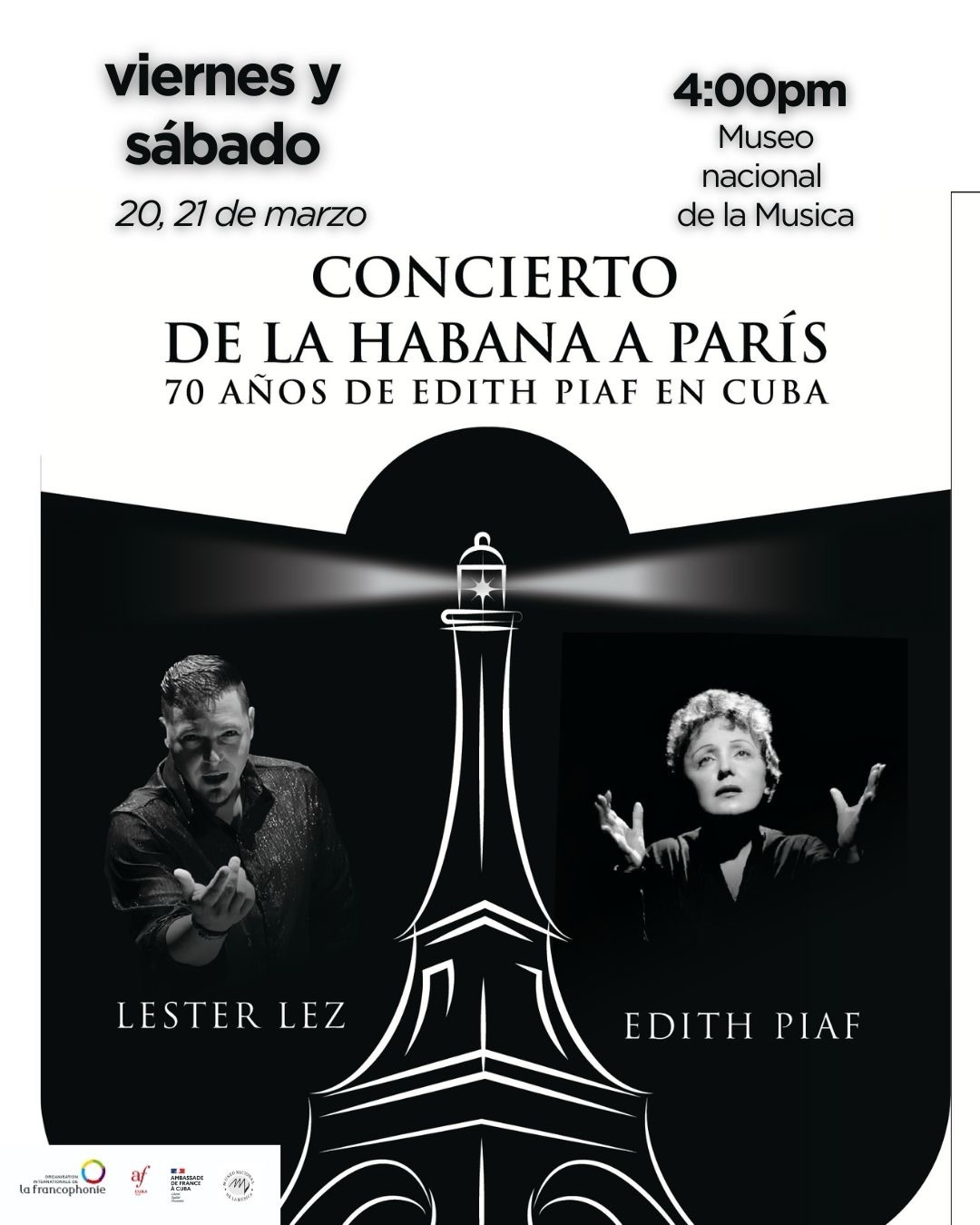 La propuesta se complementa con un concierto especial este viernes 20 y sábado 21 de marzo, a las 4:00 p.m., en el Museo Nacional de Bellas Artes, bajo el título “De La Habana a París: 70 años de Edith Piaf en Cuba”, un homenaje a la icónica artista y a su vínculo con la isla.