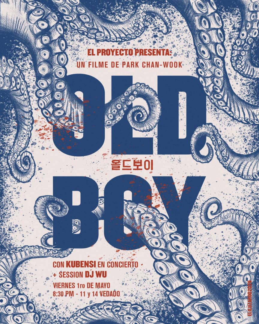 El Proyecto propone una noche que combina cine y música en vivo con la proyección de Old Boy, acompañada por un concierto de Kubensi y una sesión del Dj Wu. La cita tendrá lugar este viernes 1 de mayo, con apertura a las 8:00 p.m. y proyección a las 8:30 p.m., en su sede del Vedado.