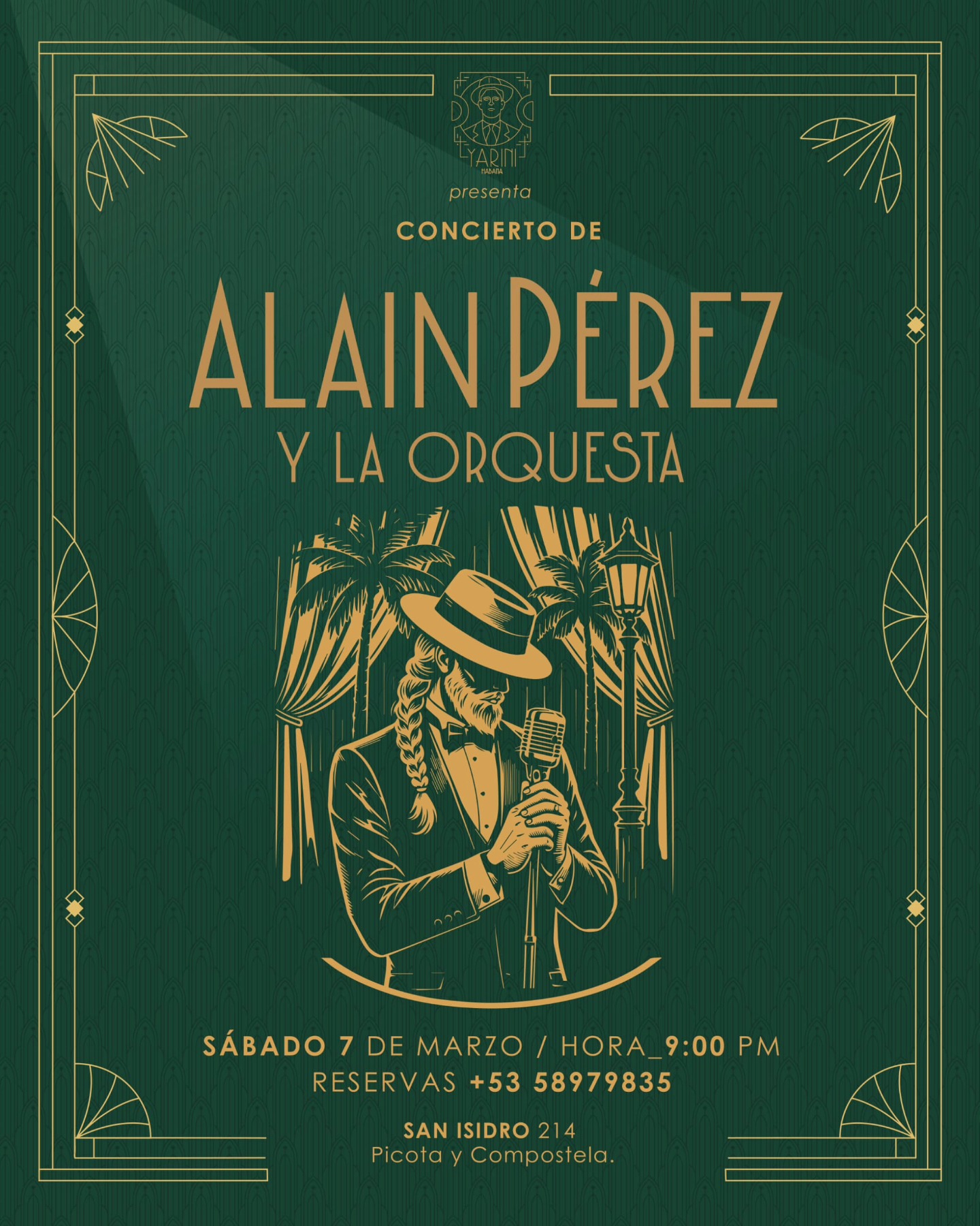 Alain Pérez y la Orquesta regresan a los escenarios habaneros con un concierto este sábado 7 de marzo, a las 9:00 p.m., en Yarini Habana. Reserva a través del +53 58979835 para disfrutar de una noche pensada para bailar al ritmo de esta potente propuesta musical.