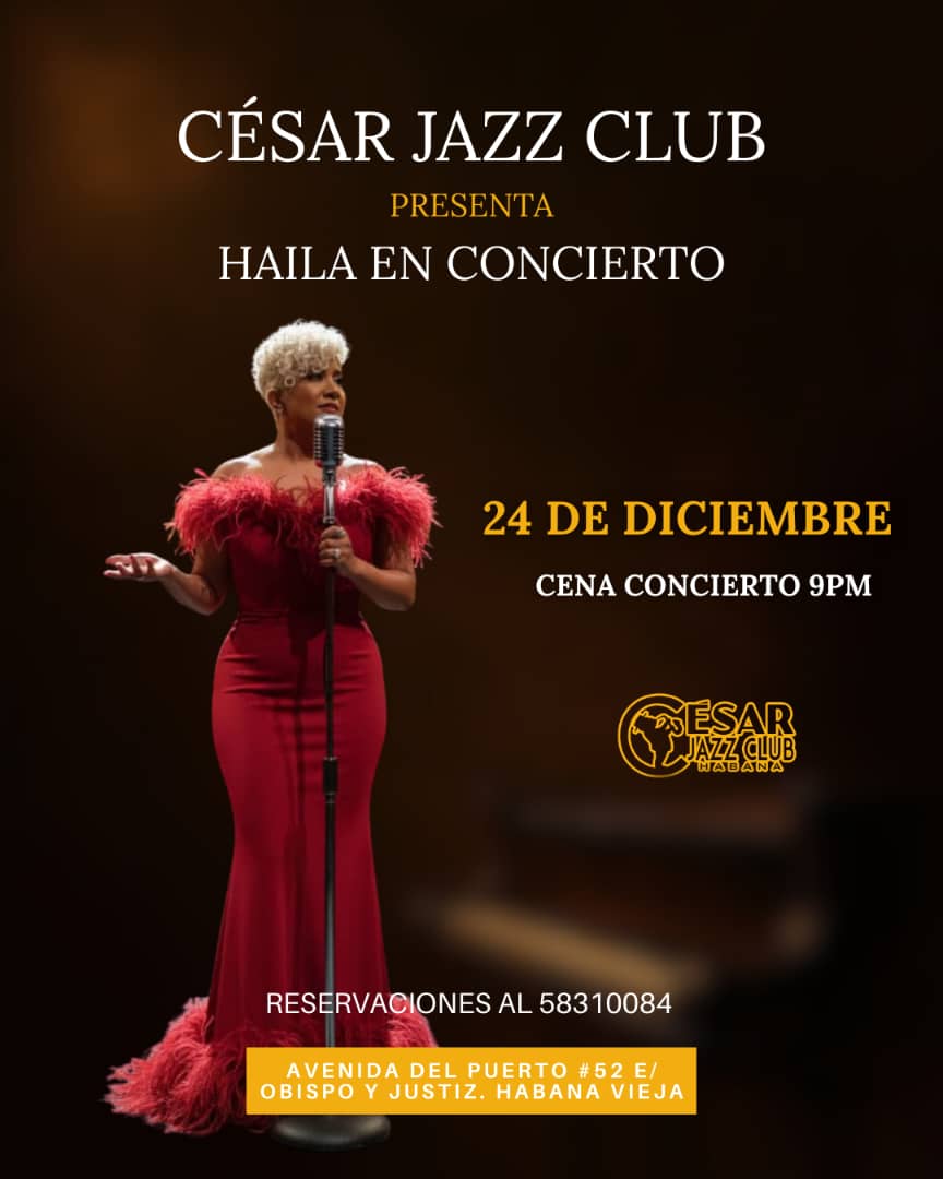 Haila regresa a César Jazz Club este miércoles 24 de diciembre con una noche de lujo y doble función, ideal para celebrar la Navidad a lo grande. La ‘Diva del pueblo’ ofrecerá dos shows: primer pase a las 7:30 p.m. (apertura desde las 5:00 p.m.) y segundo a las 10:00 p.m. (apertura a las 9:00 p.m.).