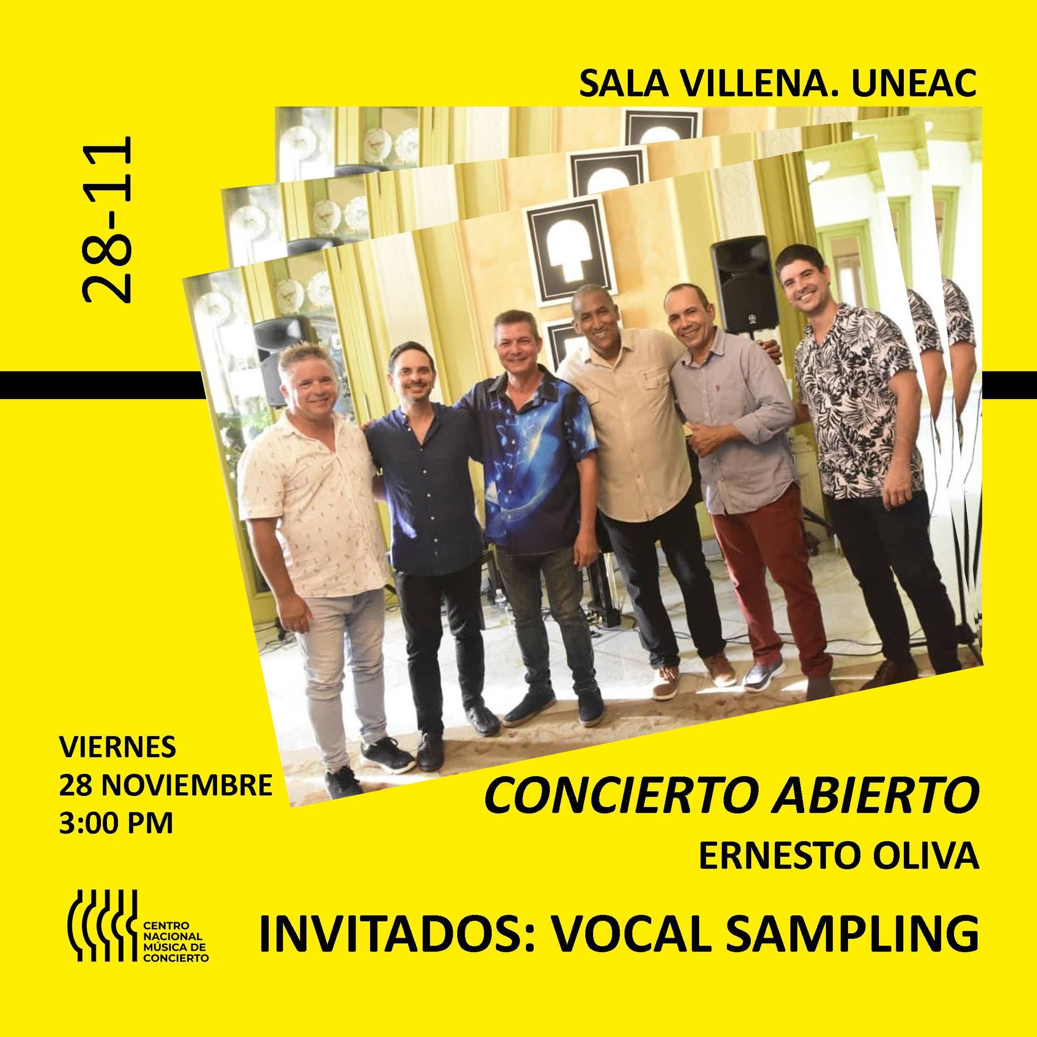 El pianista y compositor Ernesto Oliva Figueredo regresa a su espacio “Concierto Abierto” con una propuesta especial en la que se unirá a Vocal Sampling. El encuentro será este viernes 28 de noviembre, a las 3:00 p.m., en la Sala Villena de la UNEAC.