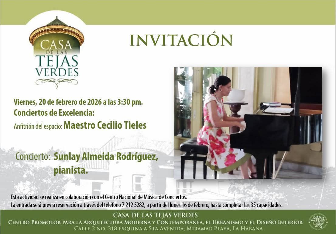 El pianista Cecilio Tieles Ferrer será el anfitrión del Concierto de Excelencia este viernes 20 de febrero, a las 3:30 p.m., en la Casa de las Tejas Verdes, con un programa que combina estrenos, clásicos del repertorio cubano y obras fundamentales del piano universal.