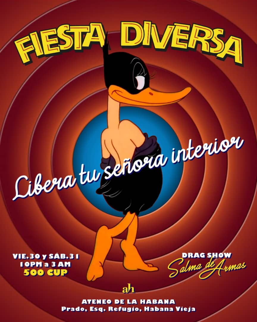 La Fiesta Diversa regresa con una edición pensada para que “liberes tu señora interior”. El plato fuerte de la noche será el Drag Show de Salma de Armas, puro carisma, glamour y actitud sobre el escenario durante las noches de este viernes 30 y sábado 31 de enero, desde las 10:00 p.m., en el Ateneo de La Habana.