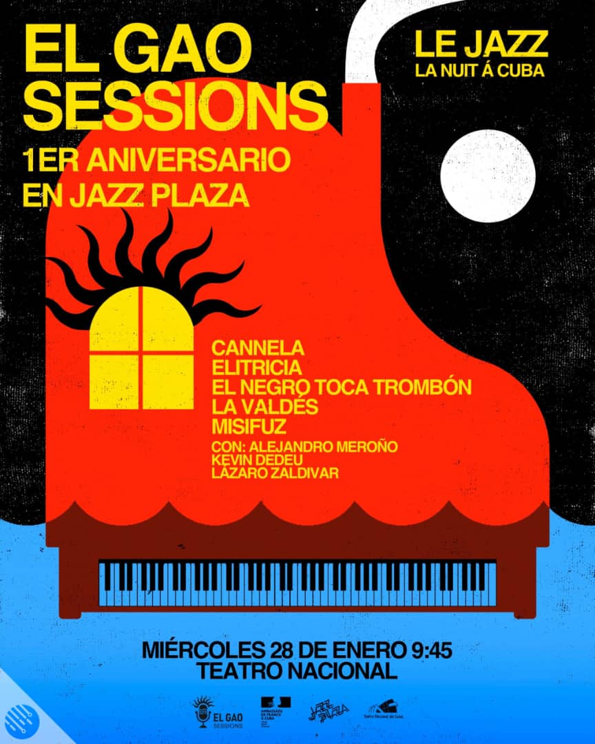 El Gao Sessions celebra su primer aniversario en el Jazz Plaza y lo hace como mejor sabe: con música viva, cruces sonoros y una alineación de invitados que promete una noche única este miércoles 28 de enero, a las 9:45 p.m., en el Teatro Nacional de Cuba.