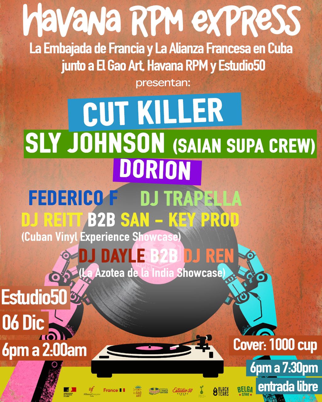Vuelve Havana RPM Express, un maratón sonoro que promete sacudir la noche habanera con un line up de lujo. Ocho DJ, ocho estilos y una sola misión: que nadie se quede quieto. En las máquinas estarán Cut Killer, Sly Johnson, San-Key Prod, Federico F, DJ Ren, Dorion, DJ Trapella y DJ Reitt, listos para encender Estudio 50 este sábado 6 de diciembre, desde las 6:00 p.m.