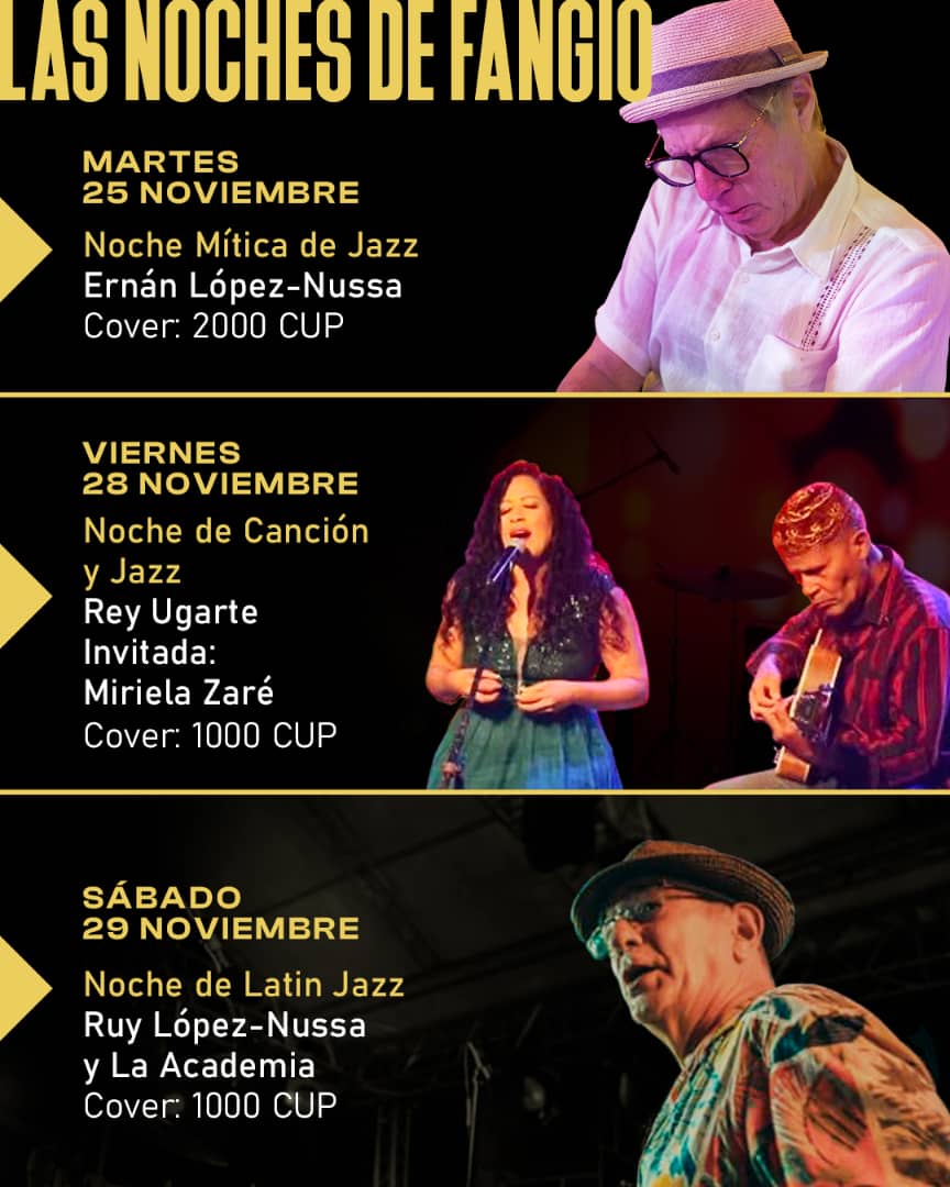 Fangio Habana regresa esta semana con música en su terraza del Vedado. No te pierdas estos eventos programados para hoy martes 25, el viernes 28 y el sábado 29 de noviembre. Puedes reservar a través de los teléfonos +53 58746051 y +53 78330916.
