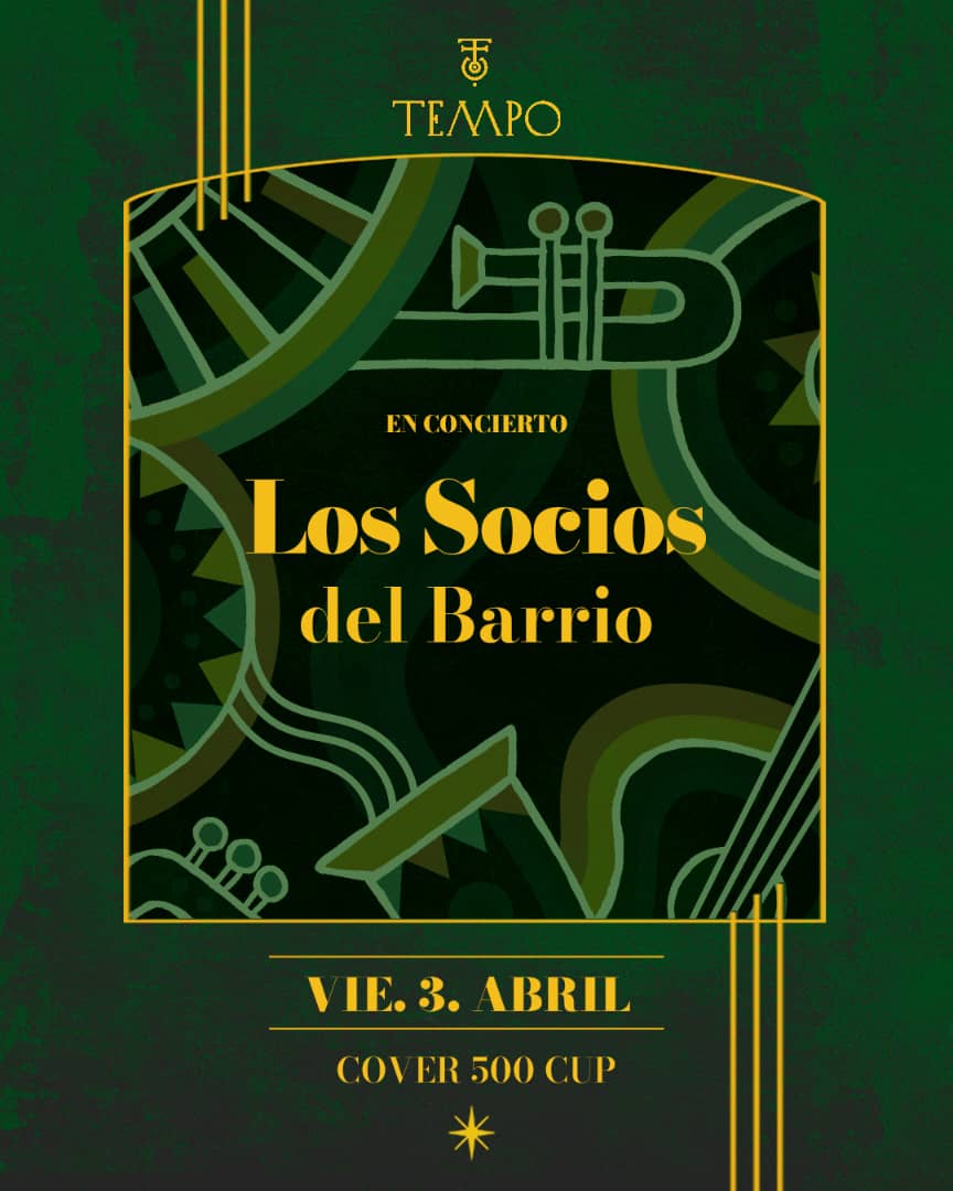 Los Socios del Barrio ofrecerán un concierto este viernes 3 de abril, a las 10:00 p.m., en Tempo Lounge Bar. Disfruta de una noche de música en vivo en uno de los espacios más activos del Vedado.