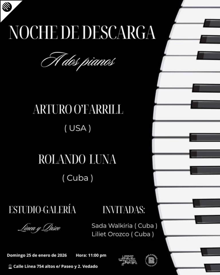 Una noche de descarga a dos pianos imperdible con Arturo O’Farrill y Rolando Luna es la propuesta del Estudio-Galería Línea y Paseo para este domingo 25 de enero, a las 11:00 p.m. Como invitadas, Sada Walkiria y Liliet Orozco, quienes sumarán sus matices a una velada que promete música de la buena.