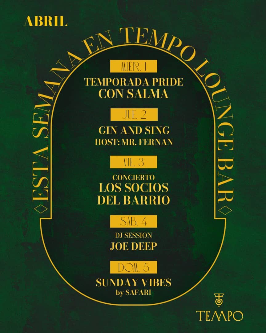 Tempo Lounge Bar presenta su cartelera del 1 al 5 de abril, con una programación que combina conciertos, sesiones de DJ y noches temáticas en pleno Vedado.