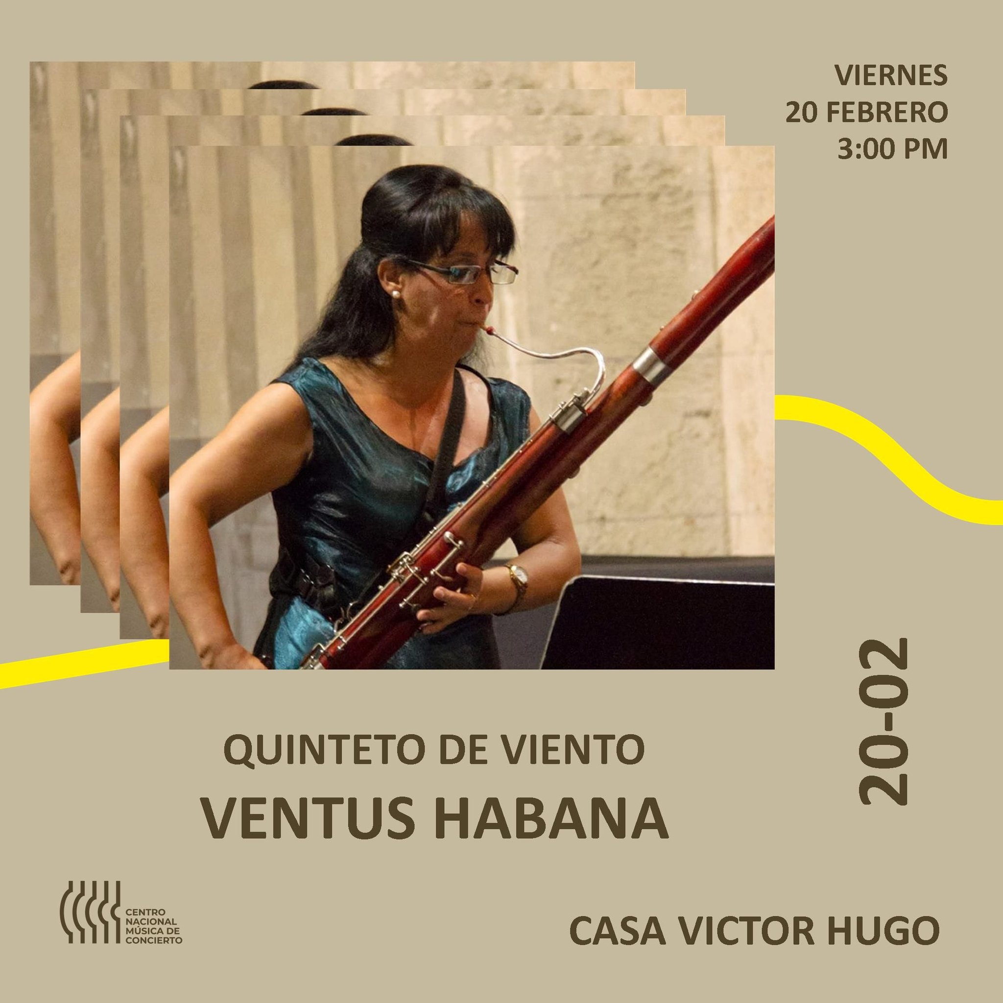 El quinteto de viento Ventus Habana ofrecerá un concierto este viernes 20 de febrero, a las 4:00 p.m., en la Casa Víctor Hugo. La presentación reunirá el formato clásico de quinteto de viento en un programa pensado para disfrutar la música de cámara en vivo.