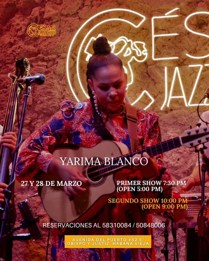 Yarima Blanco se presentará en concierto este viernes 27 y sábado 28 de marzo en el César Jazz Club. Cada noche contará con dos funciones: un primer show a las 7:30 p.m. (con apertura desde las 5:00 p.m.) y un segundo show a las 10:00 p.m. (apertura desde las 9:00 p.m.), en un formato que permite disfrutar de su virtuosismo y su fusión de música cubana y jazz en un ambiente cercano.