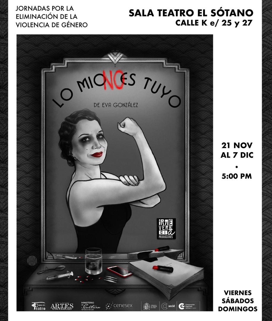 La obra de teatro Lo mío NO es tuyo, dirigida por Eva González, sube a escena como parte de las Jornadas por la Eliminación de la Violencia de Género. Una propuesta necesaria, directa y profundamente humana, que invita a reflexionar desde este viernes 21 de noviembre al 7 de diciembre en la Sala Teatro El Sótano, con funciones cada fin de semana en distintos horarios.
