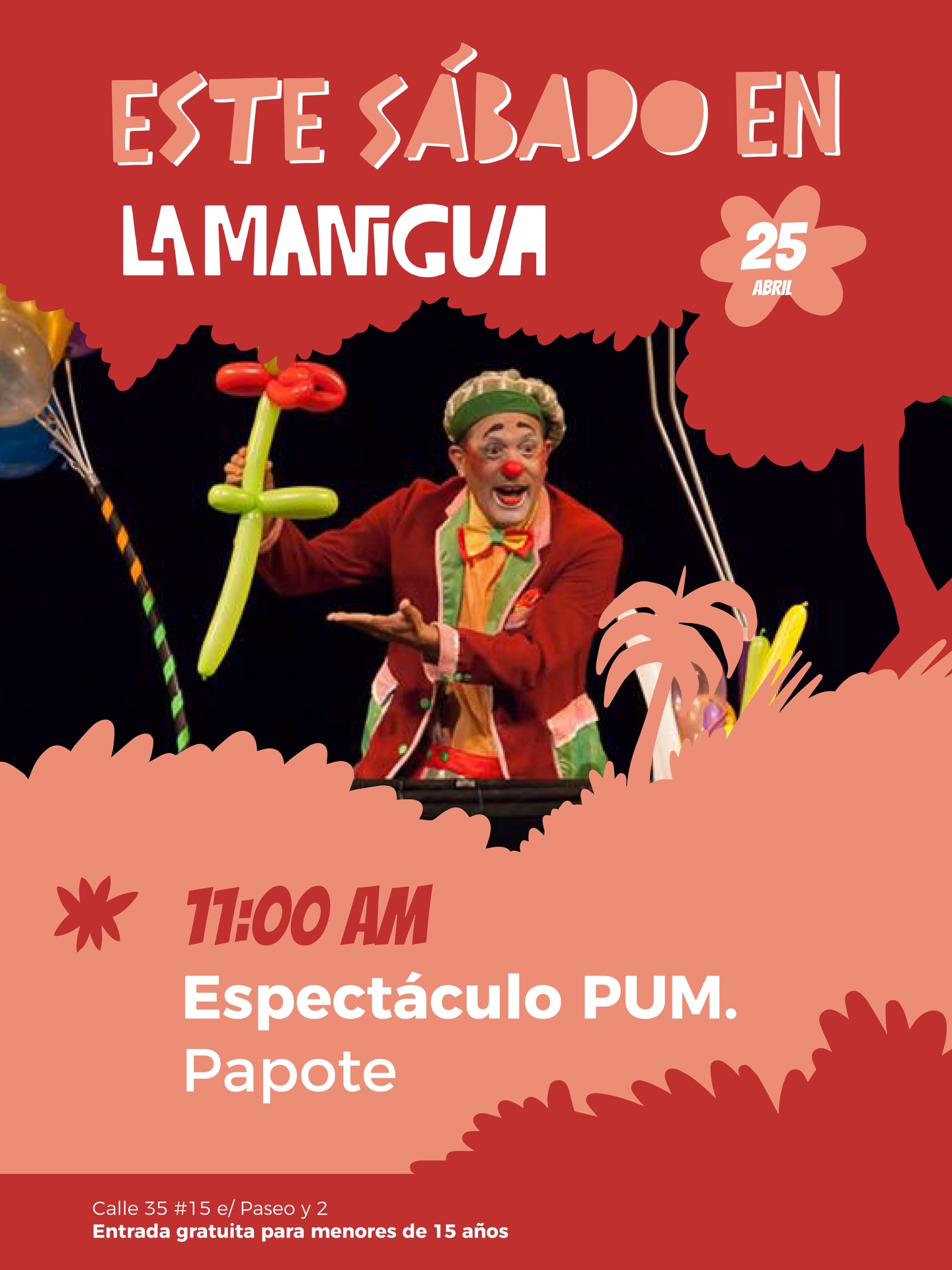 El payaso Papote, encarnado por el actor y director de teatro Ernesto Parra, se presentará esta sábado en el Espacio Cultural y Creativo La Manigua.