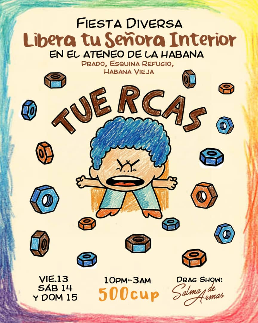 Regresa la Fiesta Diversa al Ateneo de La Habana con tres noches para liberar “tu señora interior”, subir el volumen y bailar sin pedir permiso. Hoy viernes 13, mañana sábado 14 y el domingo 15 de marzo, de 10:00 p.m. a 3:00 a.m., disfruta de buena música y un drag show a cargo de Salma de Armas.