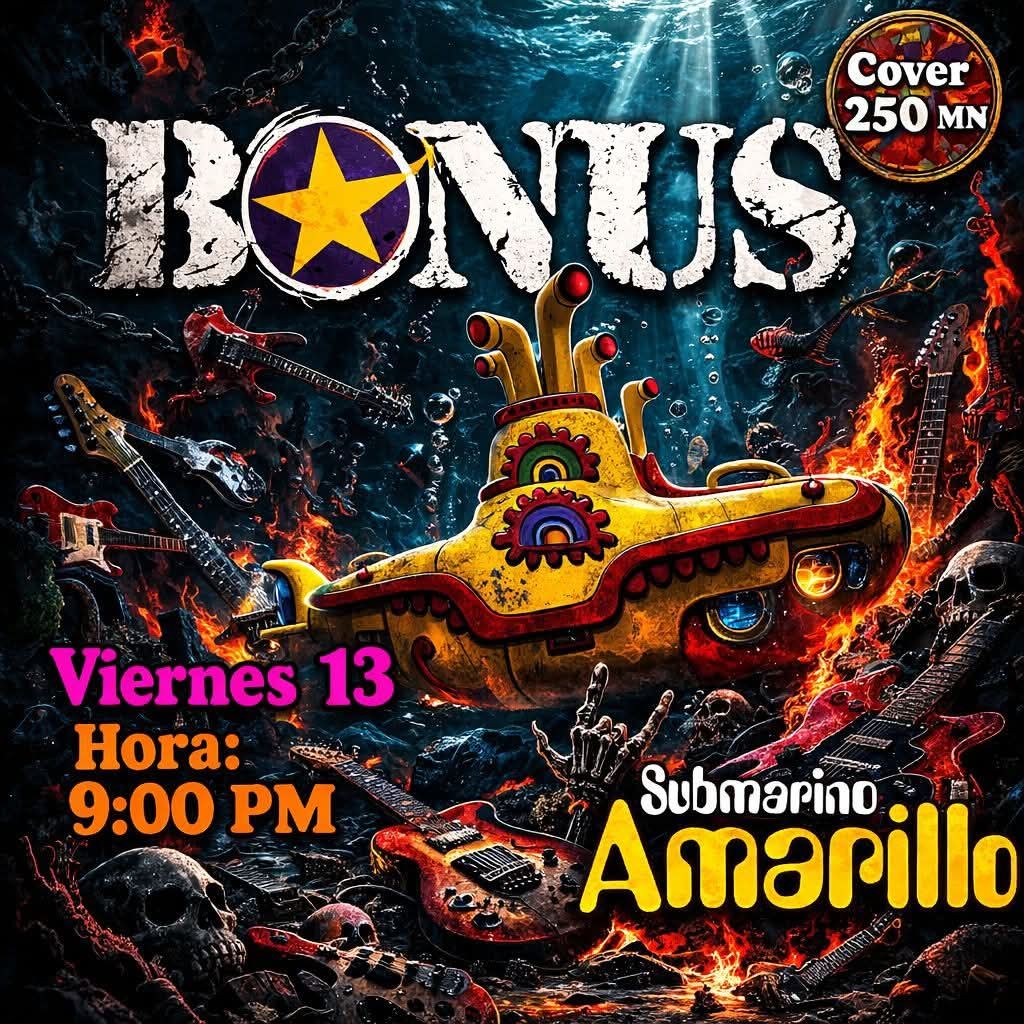 El Submarino Amarillo abrirá sus puertas desde hoy 13 de marzo con su “Al fin es Viernes”, con Rockoteca en Matinée (4:00 p.m. a 7:00 p.m.) y concierto de Bonus en la noche (9:00 p.m. a 2:00 a.m.).