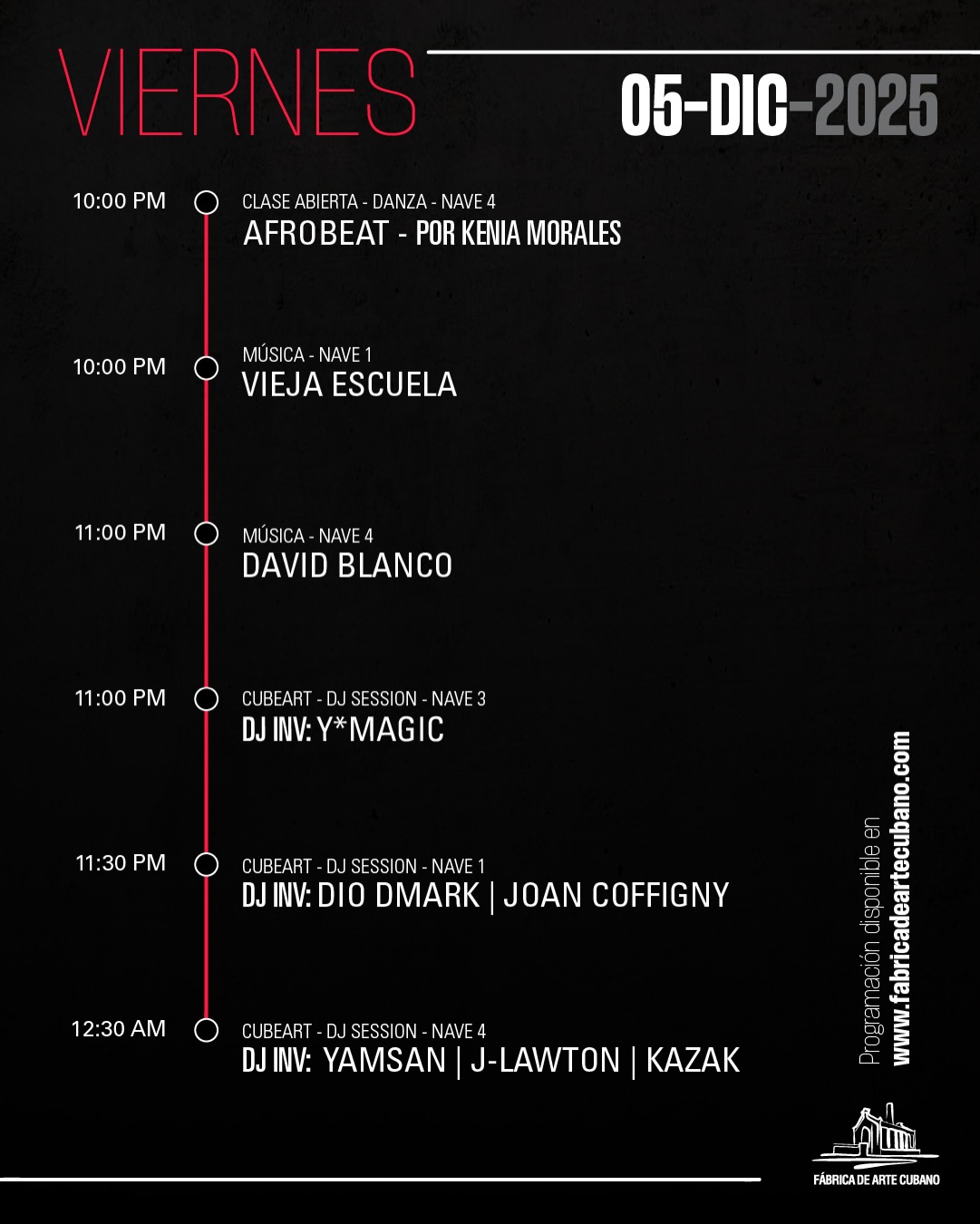 Hoy 5 de diciembre llega el Al fin es viernes con Rockoteca en Matinée (4:00 p.m. a 7:00 p.m.) y luego Dimensión Vertical se presentará en la noche (9:00 p.m. a 2:00 a.m.).