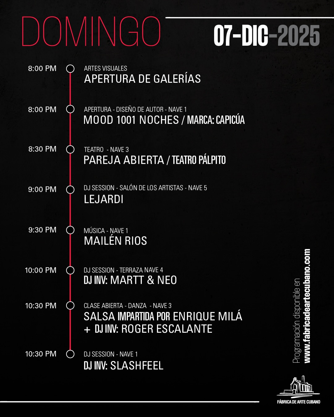 En la música, vuelve Havana RPM Express, un maratón sonoro que promete sacudir la noche habanera con un line up de lujo. Además, recomendamos los conciertos de jazz en César Jazz Club, la programación variada de Fangio Habana, las noches del Submarino Amarillo y los conciertos de Kelvis Ochoa en Madrid, Ivette Cepeda en El Lucero Gastrobar, Maria Karla en Bellas Artes y mucho más.