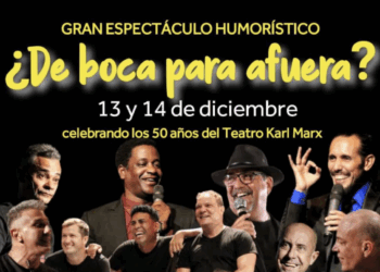 El Teatro Karl Marx celebra sus 50 años con ¿De boca para afuera?, un espectáculo humorístico que reúne a reconocidos humoristas cubanos para dos funciones especiales: mañana sábado 13 de diciembre a las 8:30 p.m. y el domingo 14 a las 5:00 p.m.