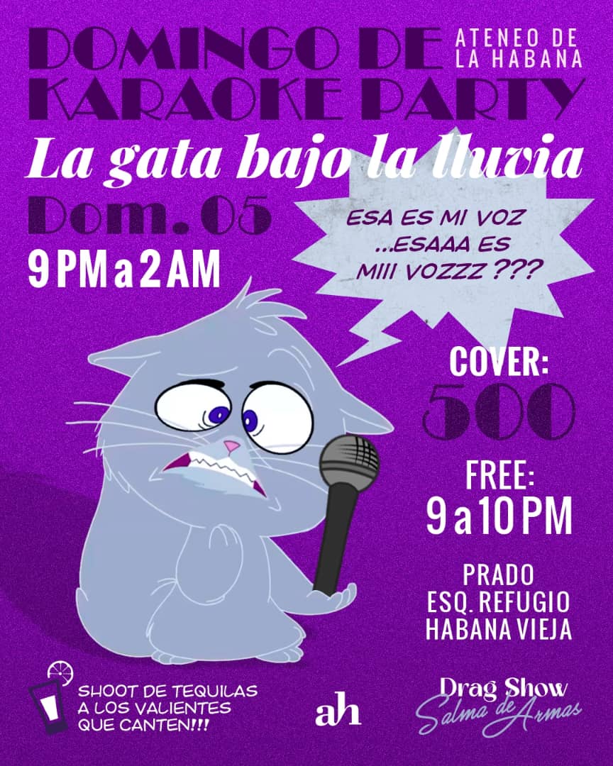 El Ateneo de La Habana acogerá el Karaoke Party “La gata bajo la lluvia” este domingo 5 de abril, de 9:00 p.m. a 2:00 a.m.
