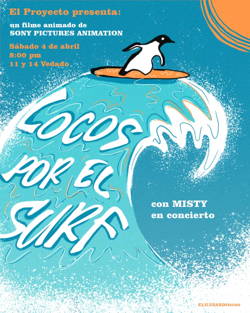 Además, mañana sábado 4 de abril se proyectará Locos por el Surf, una propuesta que combina música en vivo con la actuación de Misty.