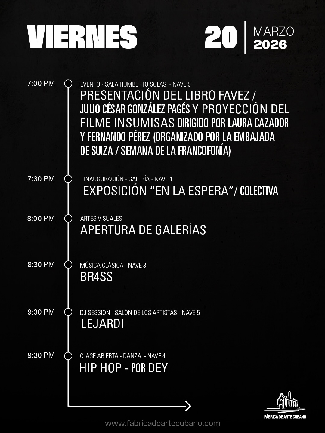 Dónde: Fábrica de Arte Cubano (Nave 3). Calle 26 esquina 11, Vedado