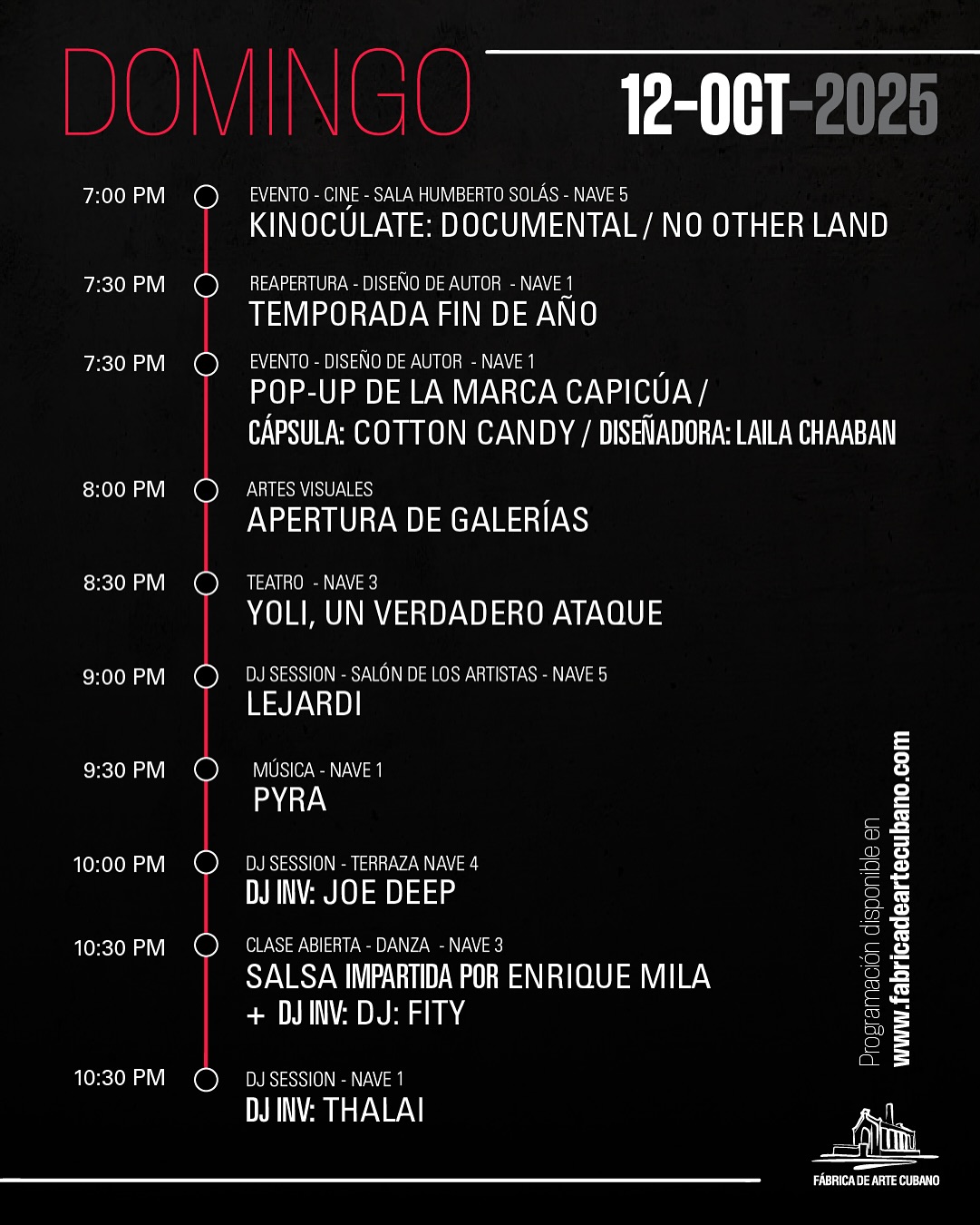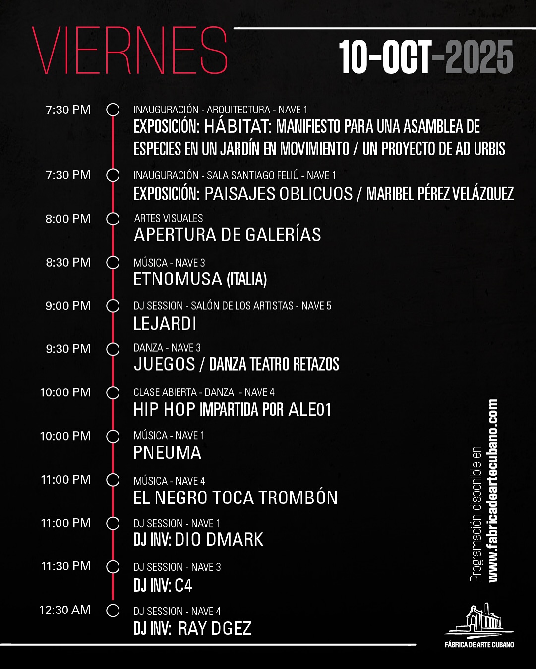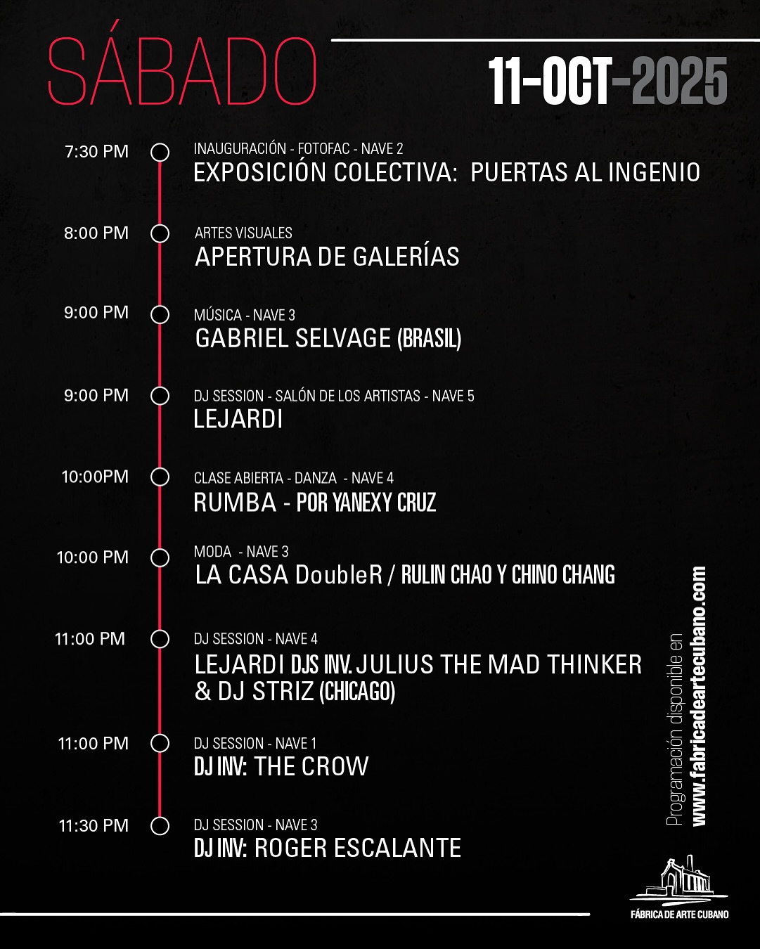 Cuándo: Viernes 10 y sábado 11 de octubre, de 10:00 p.m. a 3:00 a.m.