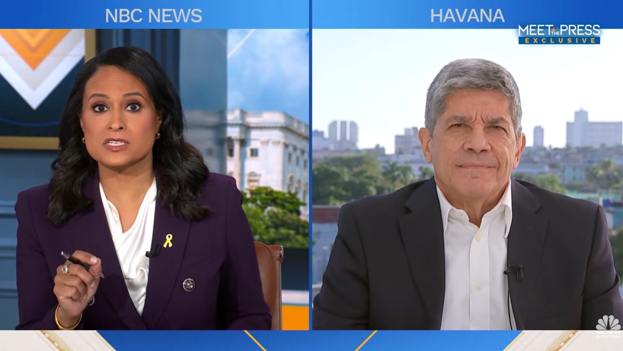 • Captura de pantalla de la entrevista de NBC News con el vicecanciller cubano Fernández de Cossío.
