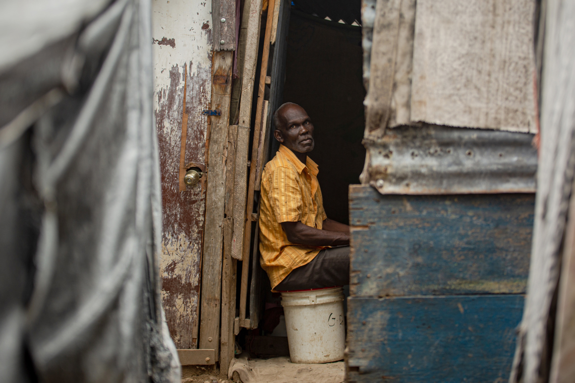 Un hombre observa desde el campamento de desplazados Camp Kid este viernes, en Puerto Príncipe. Foto: EFE/Mentor David Lorens.