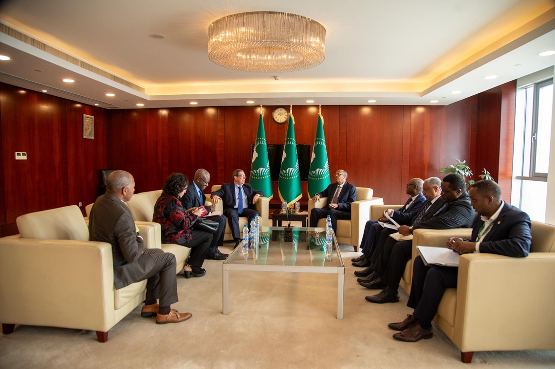 El ministro de Relaciones Exteriores de Cuba, Bruno Rodríguez Parrilla, se reunió este lunes con el presidente de la Comisión de la Unión Africana (UA), Mahmoud Ali Youssouf, y ambos reafirmaron su compromiso con el reforzamiento de las relaciones bilaterales.